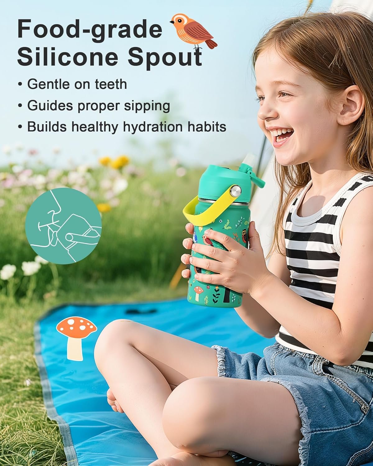 Unbreakable Stainless Steel Design: Built to survive playground tumbles! Made with 100% 304 stainless steel (BPA/lead/PAES-free), this drop-proof insulated toddler water bottle withstands bumps, drops, daily adventures and rough handling for school sports or outdoor fun.