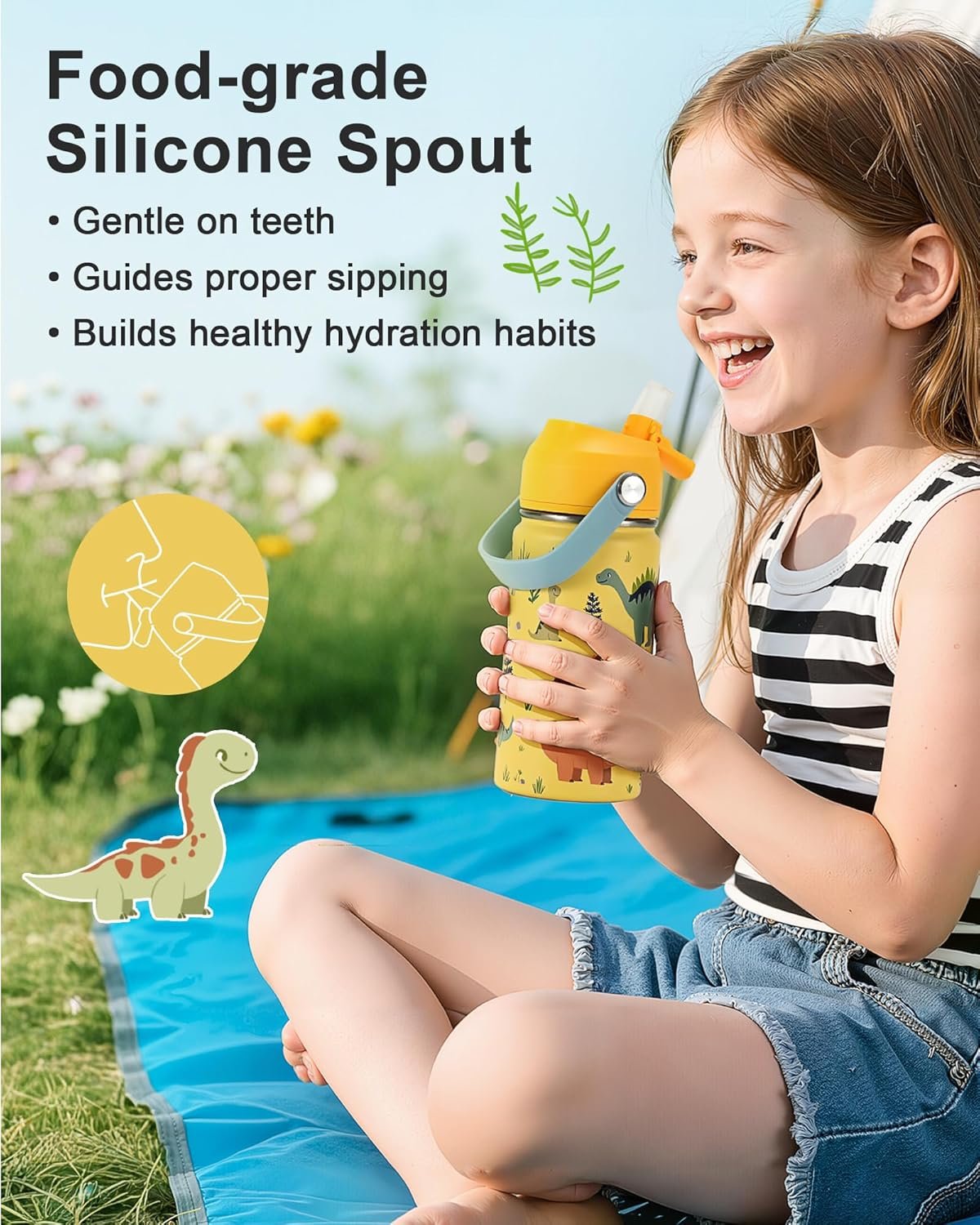 Unbreakable Stainless Steel Design: Built to survive playground tumbles! Made with 100% 304 stainless steel (BPA/lead/PAES-free), this drop-proof insulated toddler water bottle withstands bumps, drops, daily adventures and rough handling for school sports or outdoor fun.
