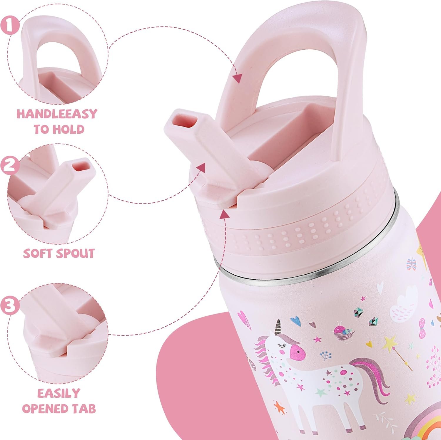 Promote Hydration: Keep your child refreshed with our kids water bottles. Our insulated water bottle has a durable lid and straw for all-day use, encouraging healthy hydration habits for kids.