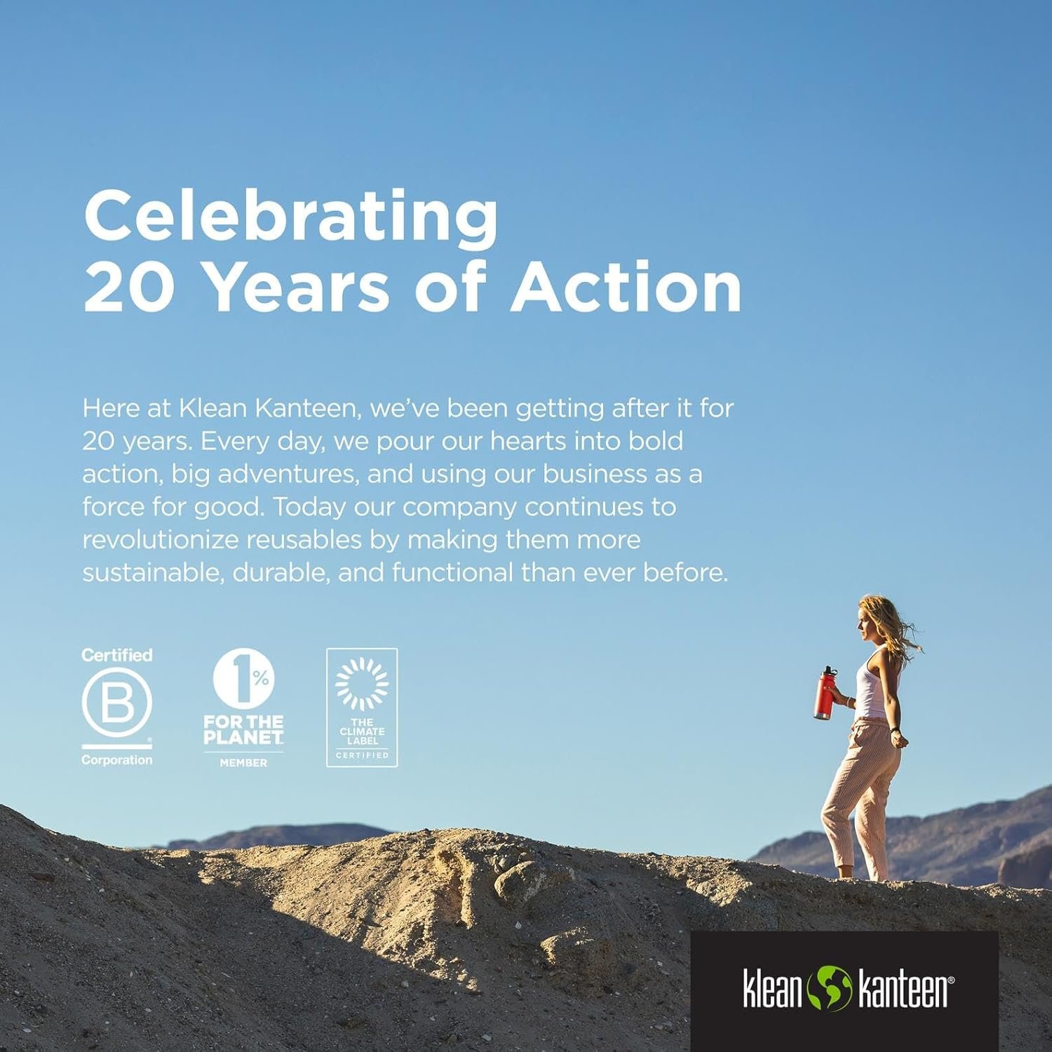 Klean Kanteen: We’ve built our business by prioritizing the well-being of people and the planet by designing sustainable, high-performance products made from certified 90% recycled stainless steel