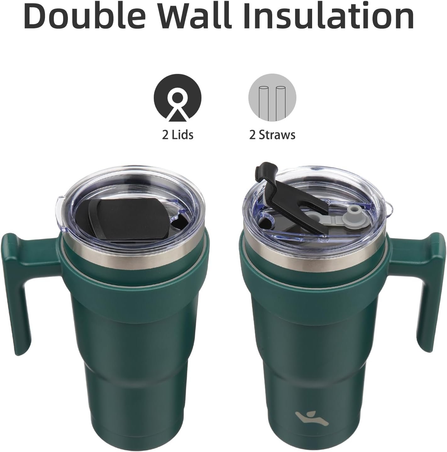 Konokyo 20 oz Tumbler with Handle and 2 Straw 2 Lid, Insulated Water Bottle Stainless Steel Vacuum Cup Reusable Travel Mug,Army Green