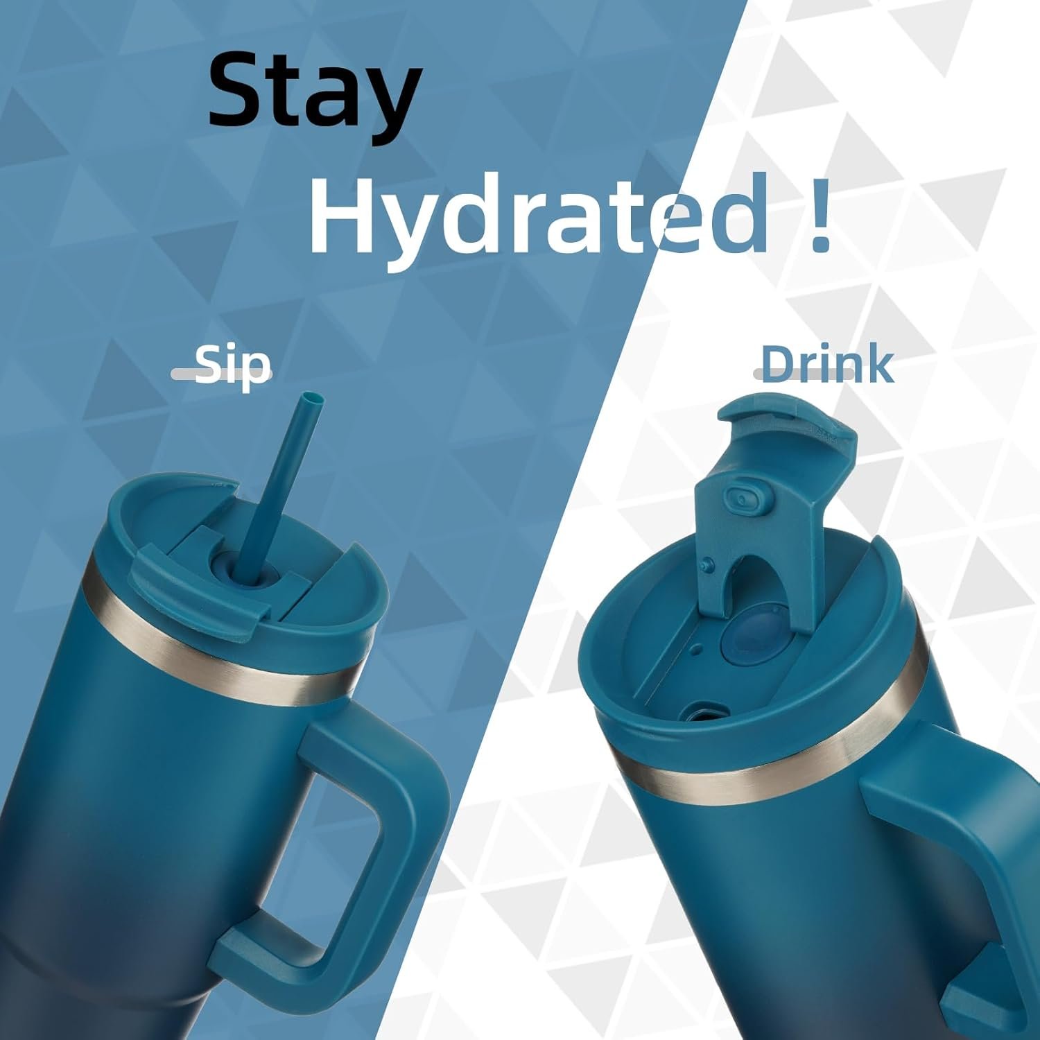 Tapered shape designed slim-base makes the tumbler easily fit in most cup holders.Comfort and sturdy handle makes it easy to carry anywhere,suitable for short term driving, gym,office,picnics, or daily use at home