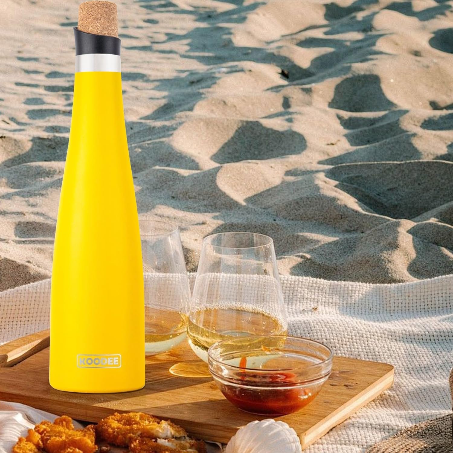 PERFECT FOR ANY OCCASION: The Koodee Wine Bottle keeps wine chilled for dinners, picnics, or beach days while its lightweight design travels effortlessly. Crafted for versatility, it preserves wine, champagne, juice, cocktails, and more without transferring metallic tastes. The sleek, unbreakable build fits seamlessly into home bars or kitchens, while its ergonomic shape ensures a secure grip and drip-free use.