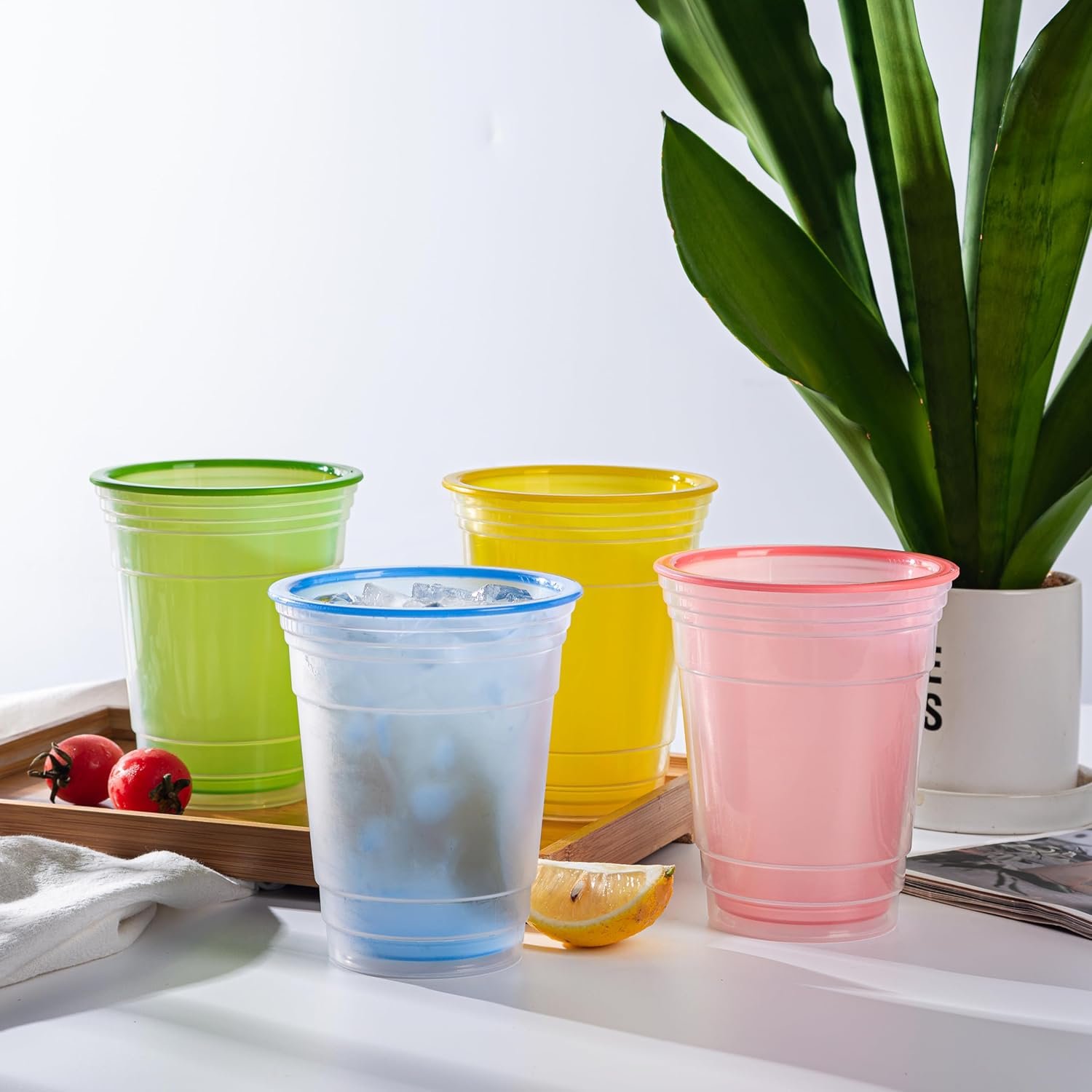 KX-WARE 18 Ounce Double Walled Colorful Tabletop Insulated Plastic Tumbler Cup Keeps Drinks Cold and Hot, set of 8 Multicolor