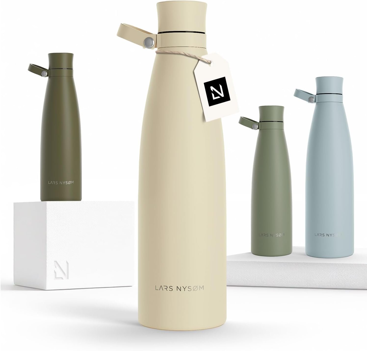 LARS NYSØM Stainless Steel Insulated Water Bottle 25oz 34oz | Insulated Thermo Flask for Hot and Cold Beverages | Leakproof Drinking Bottle (Almond Beige, 33.9oz)