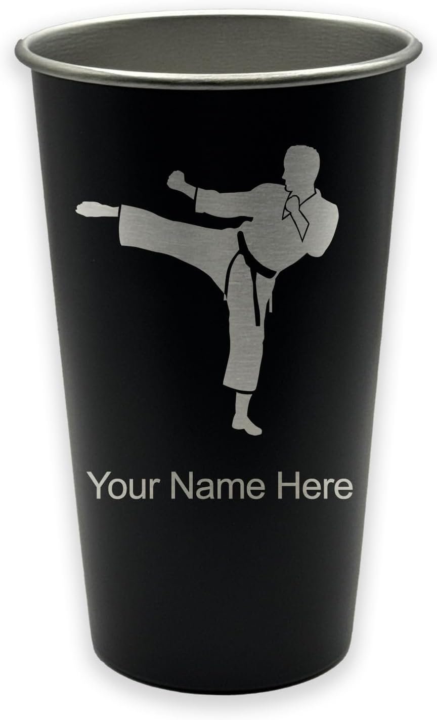 LaserGram Personalized Cup, Karate Man, Stainless Steel Reusable Shatterproof Tumbler, Custom Engraved Gift (16oz / 473ml, Black)