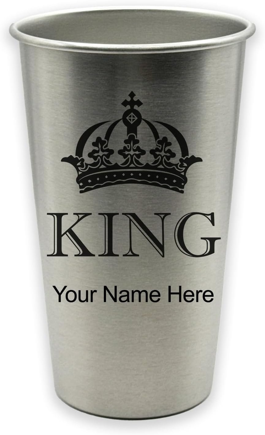 LaserGram Personalized Cup, King Crown, Stainless Steel Reusable Shatterproof Tumbler, Custom Engraved Gift (16oz / 473ml, Stainless Steel)