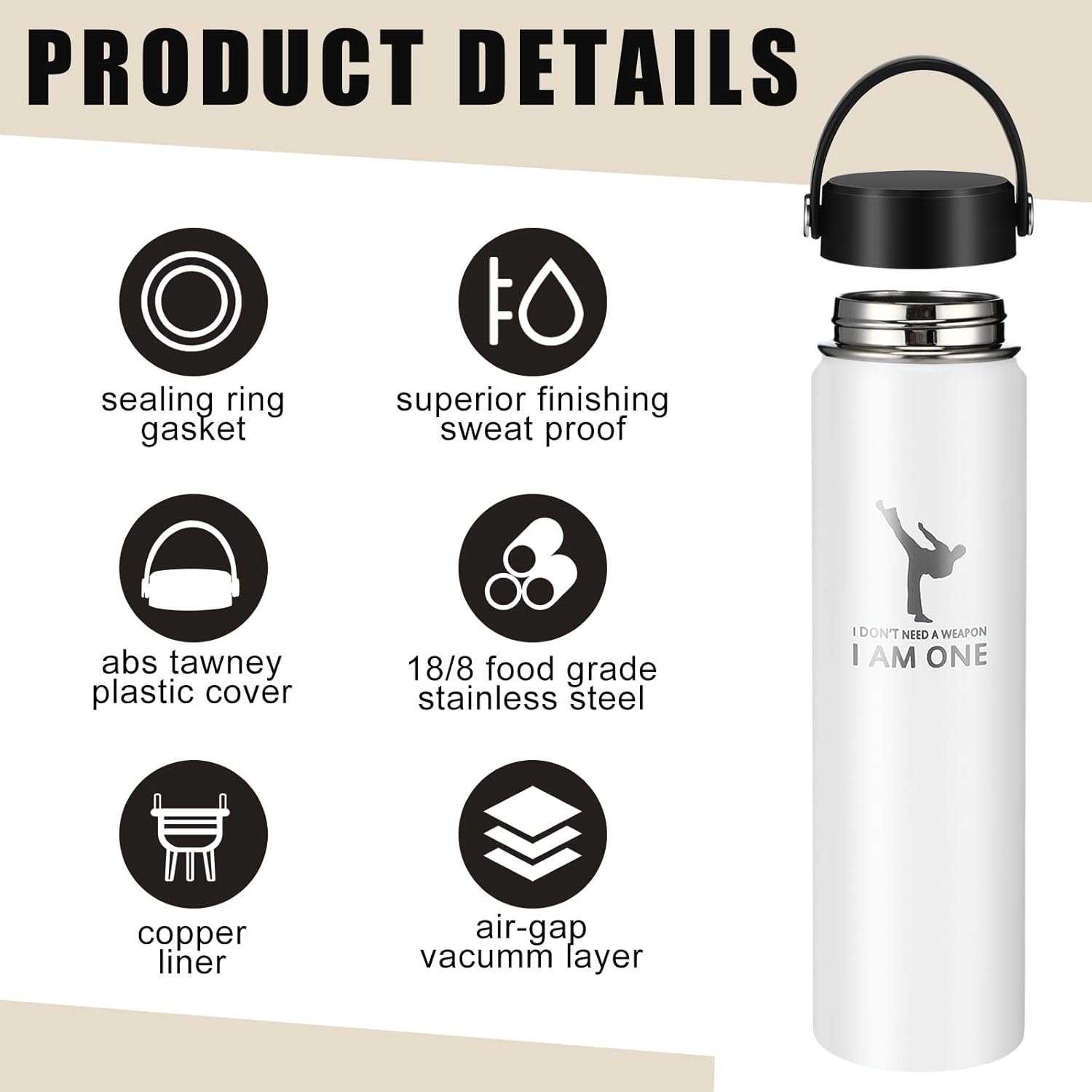 Karate Water Bottle: this karate gifts set comes equipped with 1 piece of 24 oz water bottle, ensuring that your beverage remains at ideal temperature, no matter where you go; It’s constructed from robust stainless steel, enhancing its durability while easily retaining warmth, promising you an enjoyable hot or cold drink