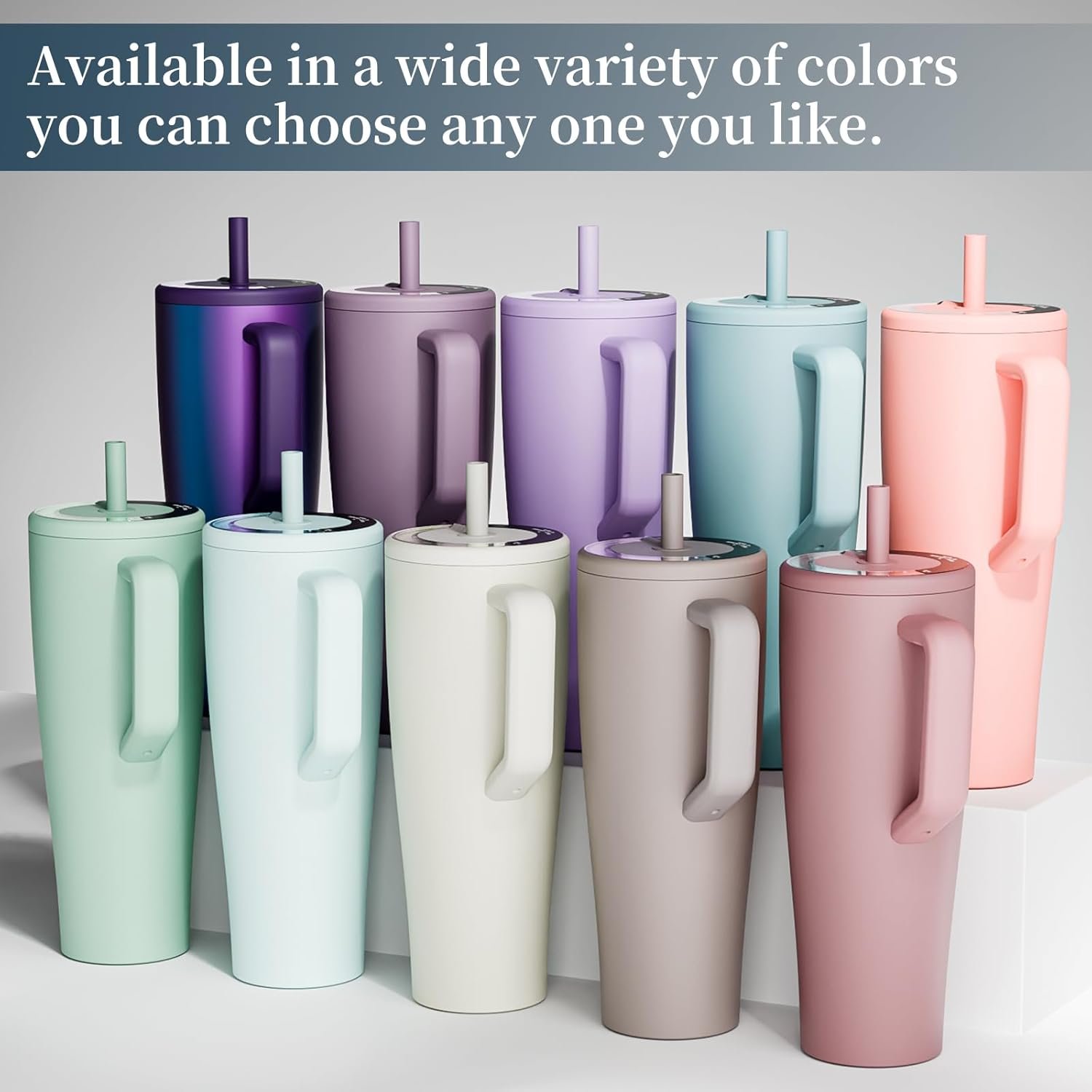 Leak proof No Spill Insulated Water Bottle 40 Oz Leakproof Tumbler Cup with Handle and Flip Straw (Dune)
