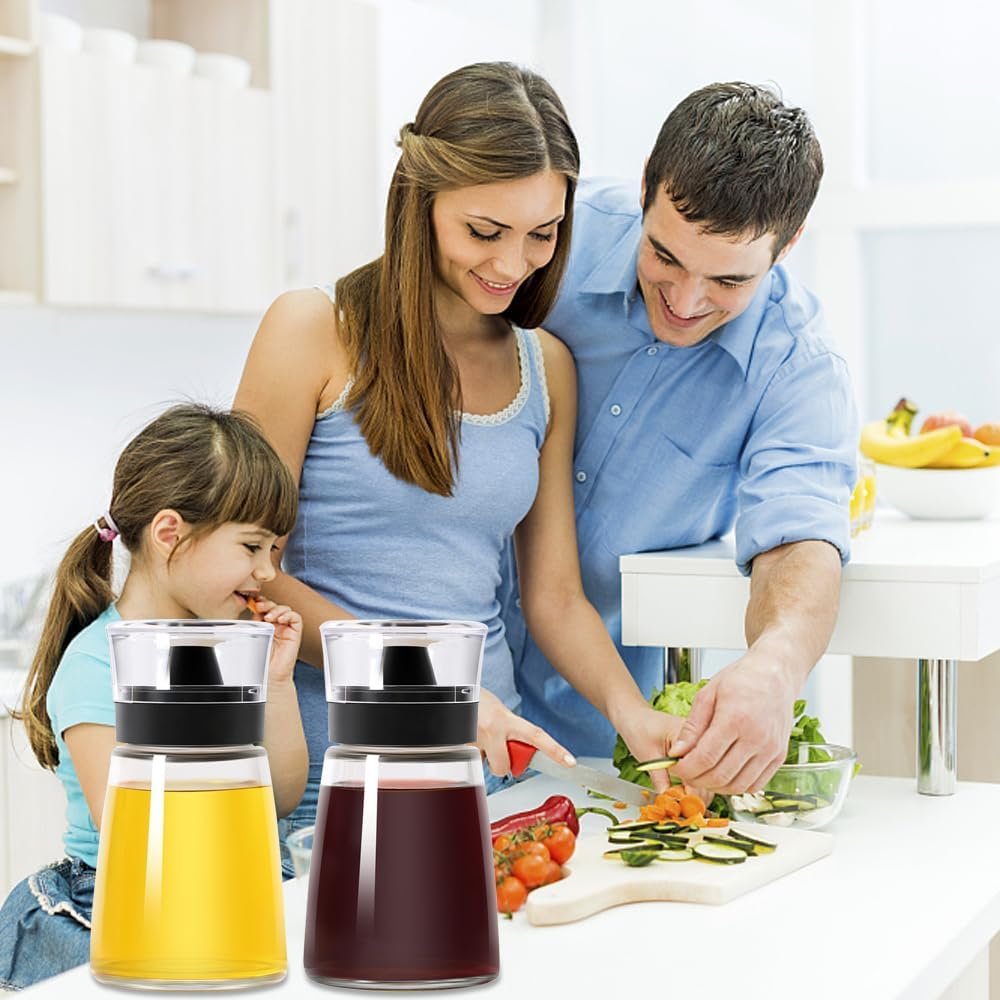 Food Grade Material: The oil carafe is made of high quality glass container and silicone ring, food grade and no rust, reusable and long lasting