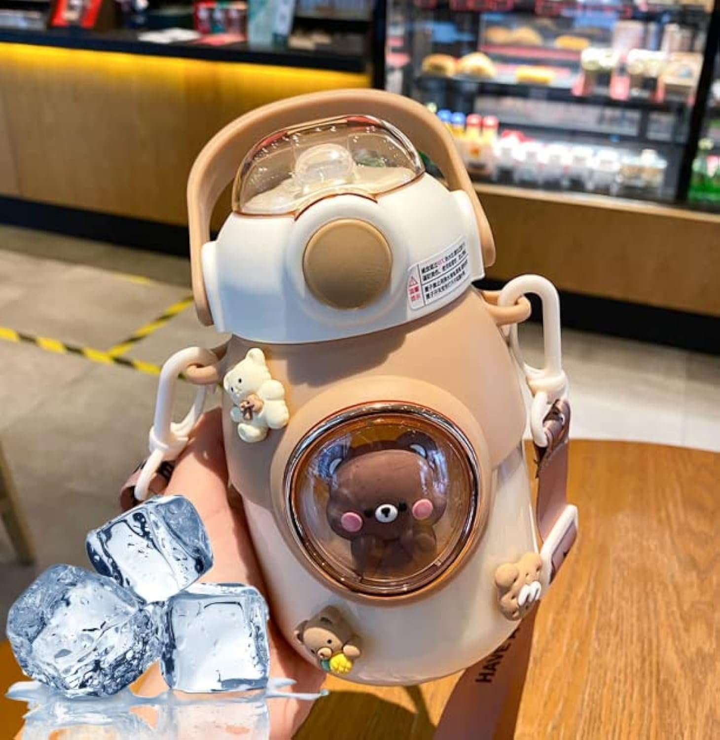 LEJN 28 oz Water Bottle Kawaii with Adjustable Shoulder Strap for Summer Cold Water Chill Portable Leakproof BPA-free Cartoon Children Cup Traveling Hiking Camping (Brown820ml)