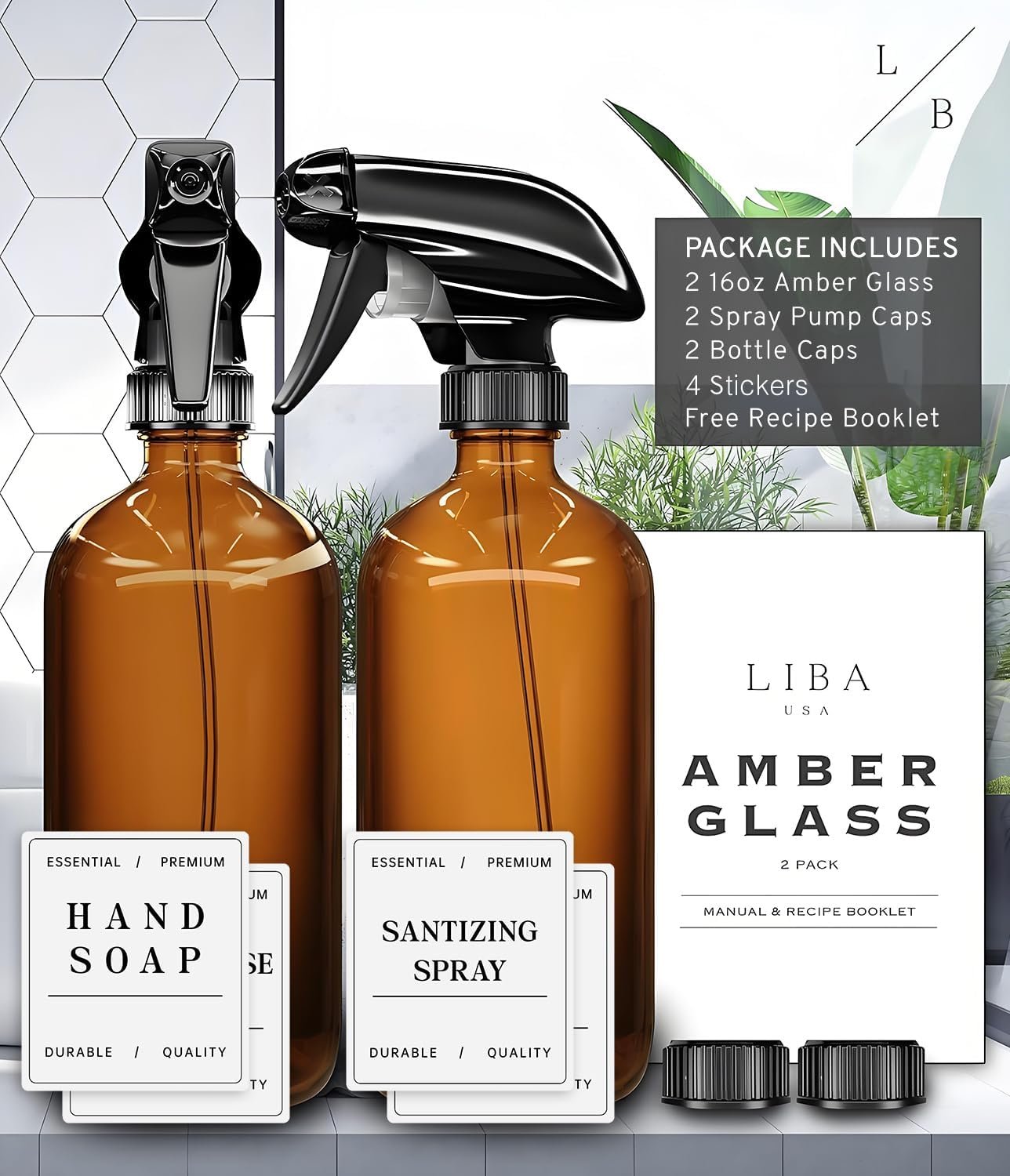 HEALTHY, HAPPY HOME- LiBa’s premium 2 pack amber glass spray bottles offer UV protection and are equipped with an adjustable spay nozzle, making them the perfect solution to all of your DIY needs. Ingredients like bleach, baking soda, vinegar, and sensitive essential oils will remain at top quality. Create your favorite natural cleaning solutions, hair treatments, window, floor, carpet , and kitchen cleaners, air fresheners, pet, ironing and linen spray and much much more!