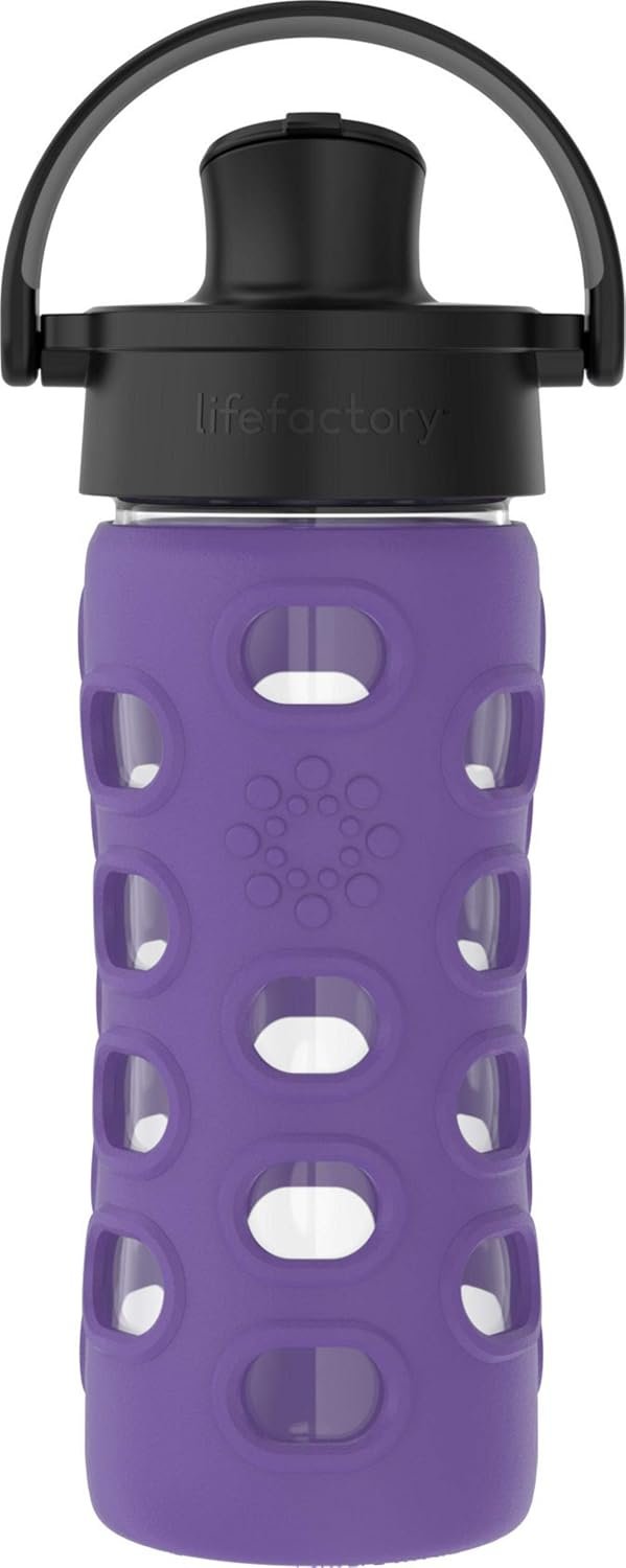Lifefactory 12-Ounce Glass Water Bottle with Active Flip Cap and Protective Silicone Sleeve, Iris
