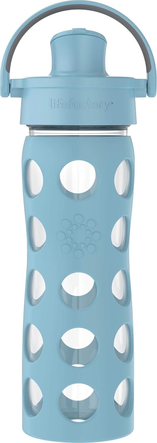 Lifefactory 16-Ounce Glass Water Bottle with Active Flip Cap and Protective Silicone Sleeve, Denim