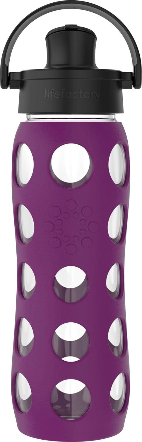 Lifefactory 22-Ounce Glass Water Bottle with Active Flip Cap and Protective Silicone Sleeve, Plum