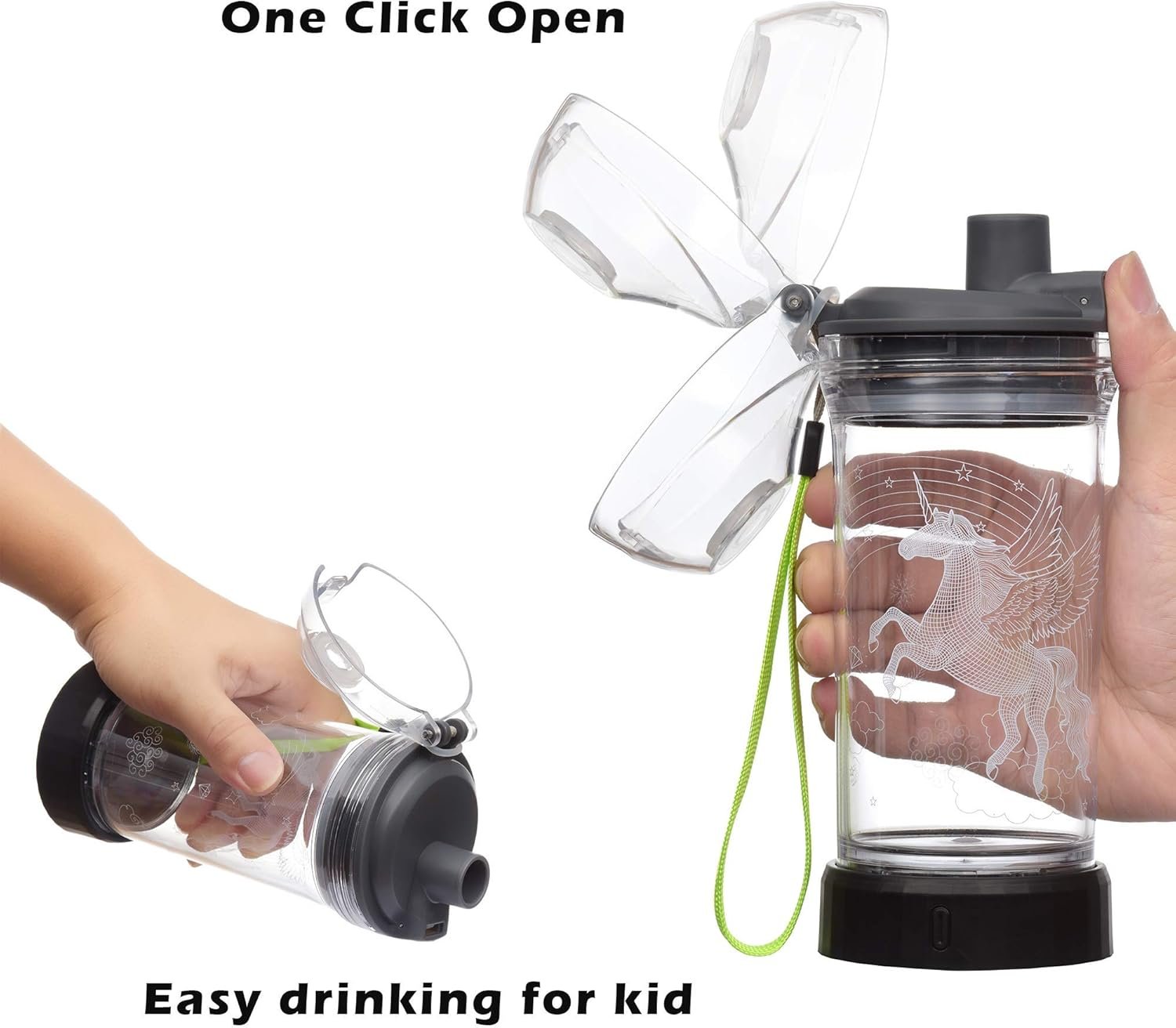Durable-Safe-Functional: The bottle part is made from Eastman Tritan material, which make it a durable hydration bottle. It’s also BPA-free which make them the perfect on-the-go companion for your young child, tweens. Under the lid, the spring-loaded push botton which means it easy opening; The silicone gasket fitted inside the lid makes it leak-proof