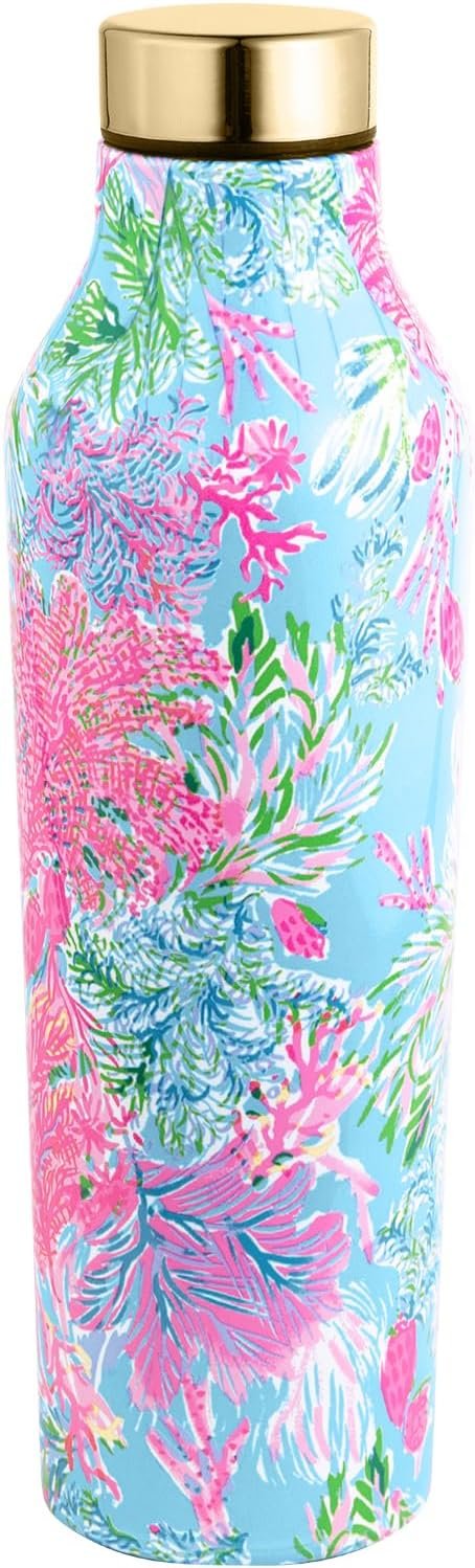 Lilly Pulitzer Stainless Steel Water Bottle, 18 Oz Metal Water Bottle, Double Wall Insulated Tumbler with Lid, Cay to my Heart