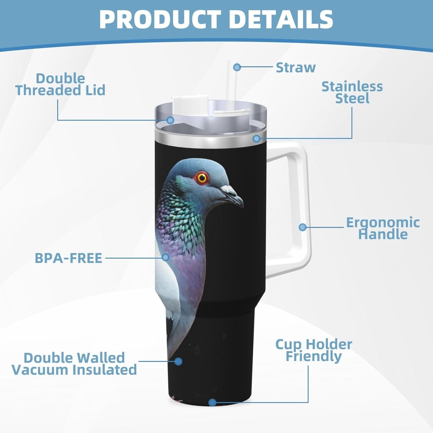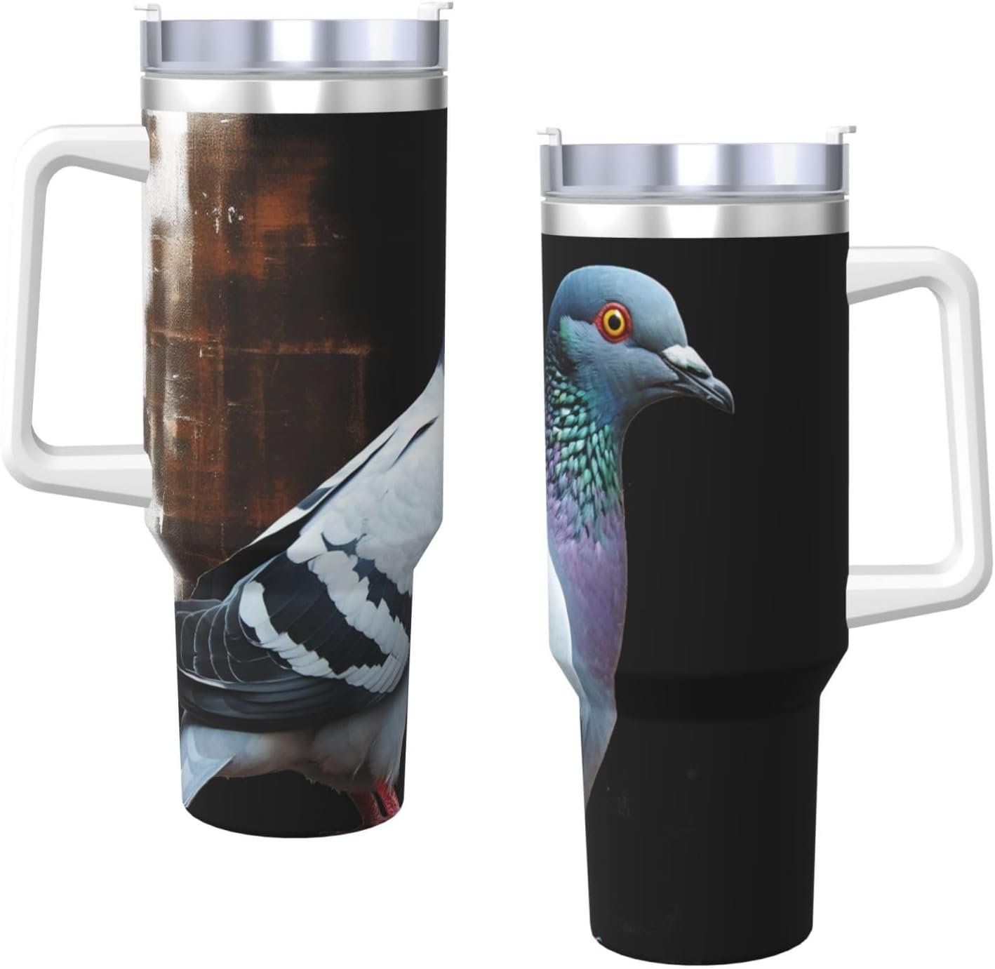 LKWSCGHM 40 oz Stainless Steel Tumbler with Handle and Straw, Pigeon Car Cup Insulated Water Bottle Personalized Ice Bully Cup Hot/Cold Travel Coffee Mug Gifts, Cupholder Friendly