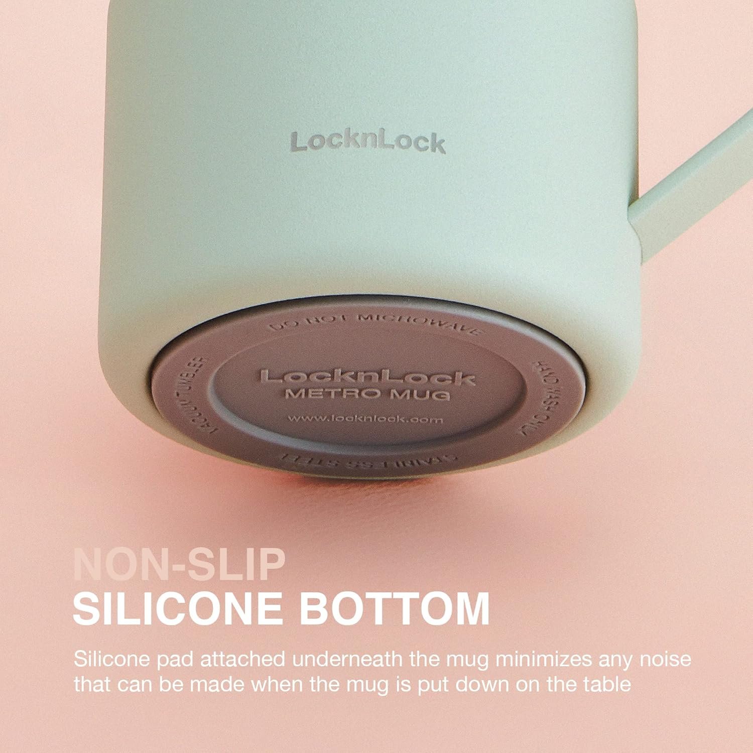 STAYS QUIET AND STEADY: The LocknLock stainless steel mug with a non-slip silicone base grips flat surfaces to prevent noise and spills; ideal for use at work, in the library, or on the go