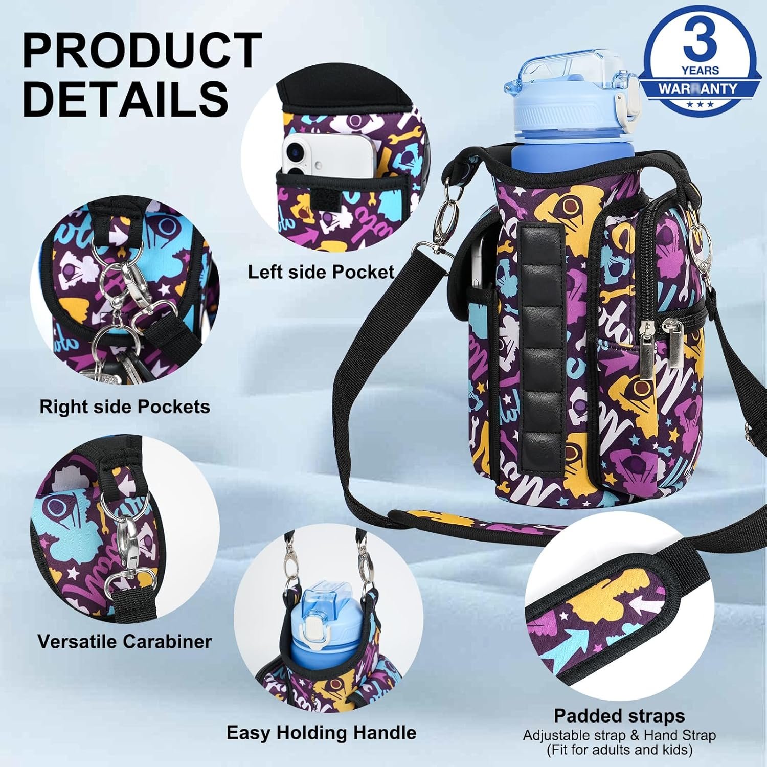 【Universal Fit and Practical】 Designed to fit most standard water bottles from 18oz to 40oz, crafted from soft neoprene, sturdy yet lightweight, this gym water bottle holder bag offers a reliable solution for gym-goers seeking convenience and functionality