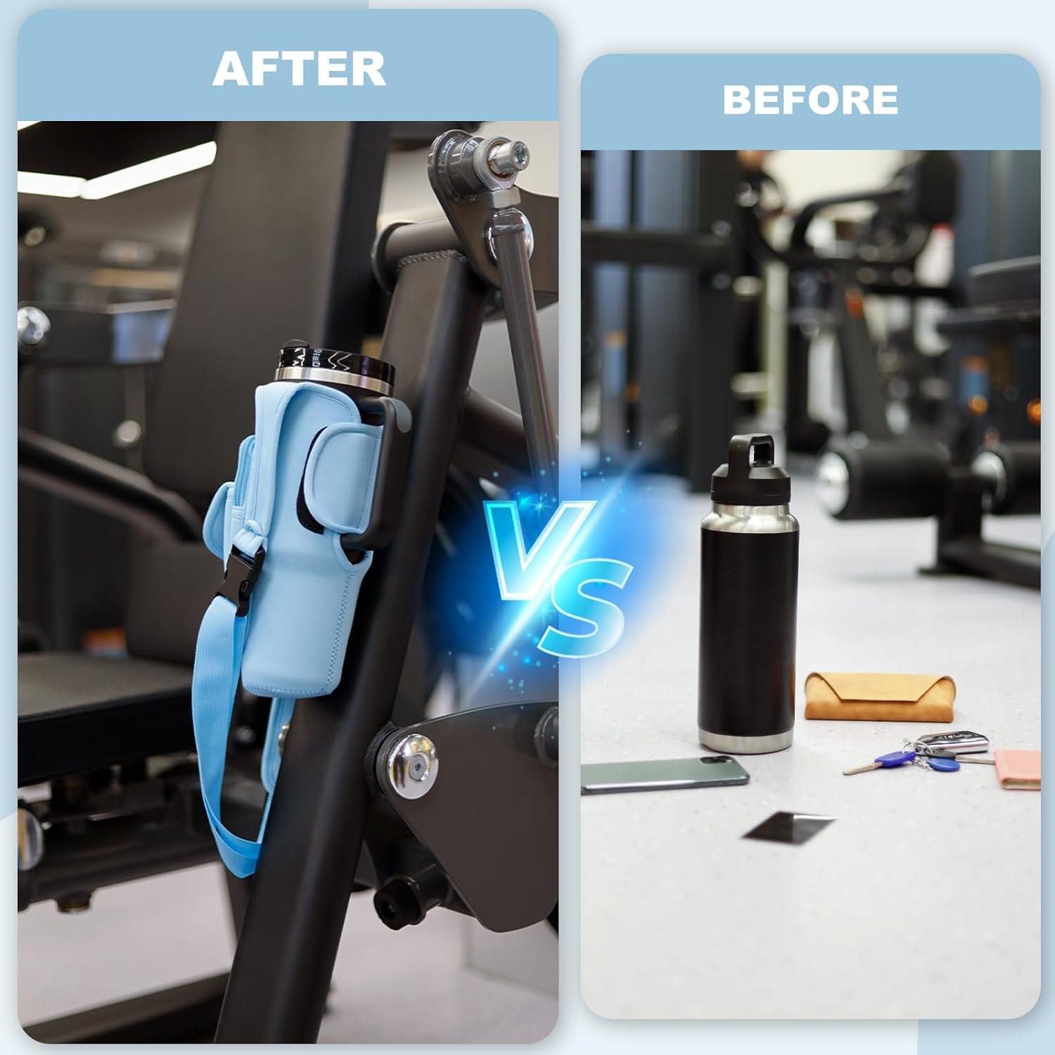 Magnetic Gym Bags for Men & Women – Magnetic Bag Water Bottle Sling Bag for Stanley Cups | Water Bottle Holder with Card Pockets, AirPod Case for Fitness, Hiking, Workouts (Blue)