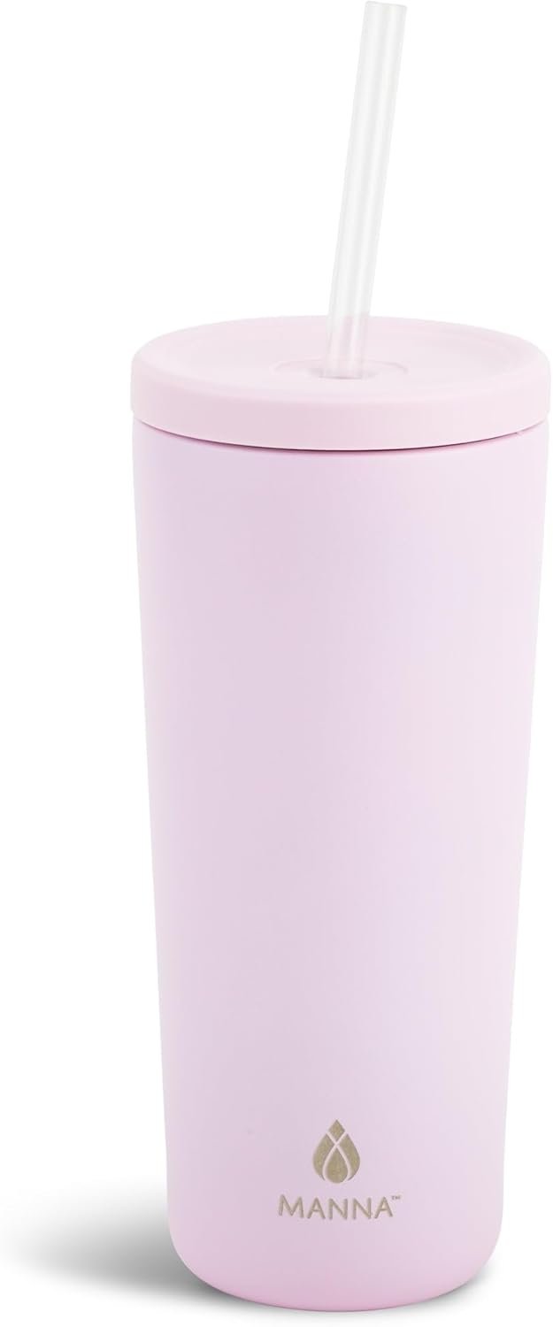 Manna Ranger Double-wall Insulated Stainless Steel Tumbler with Leak-proof Smart Seal Lid and Reusable Tritan Straw – 24 Oz – Lavender