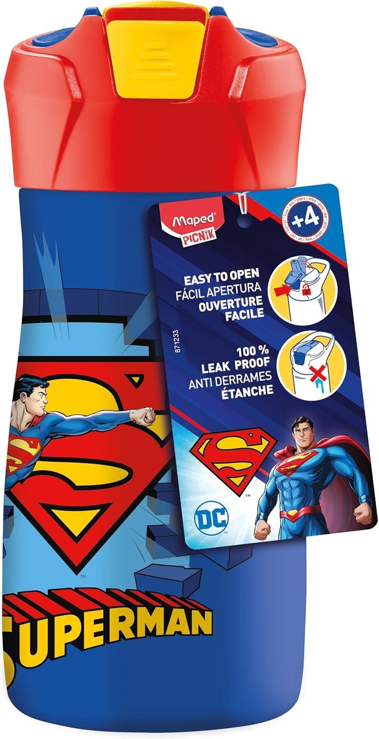 Iconic Superman design: with its look inspired by the famous superheroes, this bottle will delight young Superman fans. A cool and functional accessory that accompanies children through the day in style and practical!