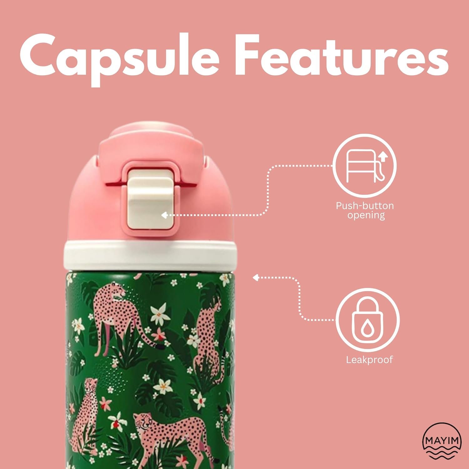 Mayim Capsule – 24oz Vacuum Insulated Water Bottle with Locking Lid & Carry Handle | Stainless Steel Travel Tumbler for Iced Coffee & Water | BPA-Free, Leakproof (Jungle Green – Safari Chic)