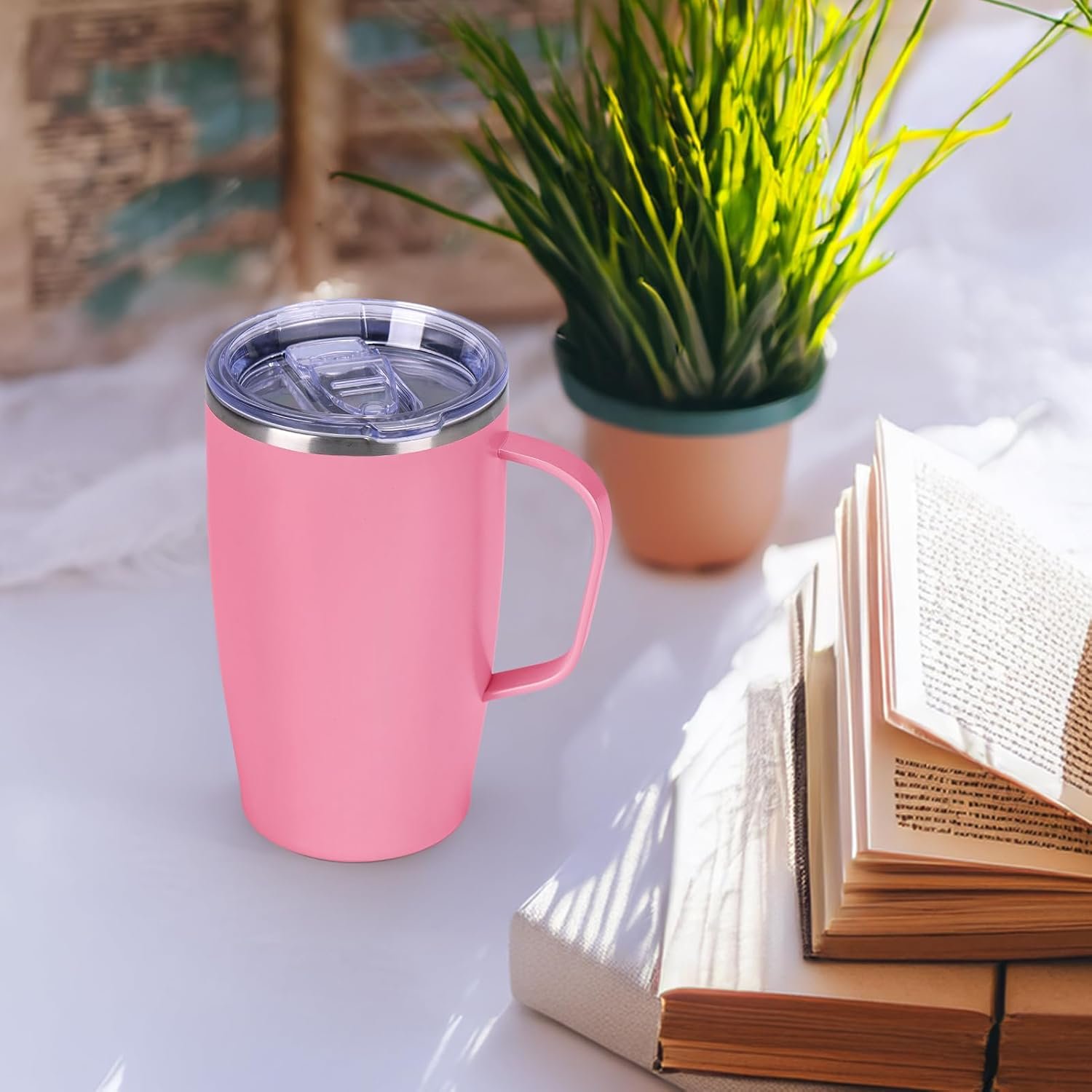 MEBRUDY 19oz Insulated Coffee Mug Tumbler with Lid, Leak Proof Double Wall Vacuum Travel Coffee Mug with Handle, Dark Pink