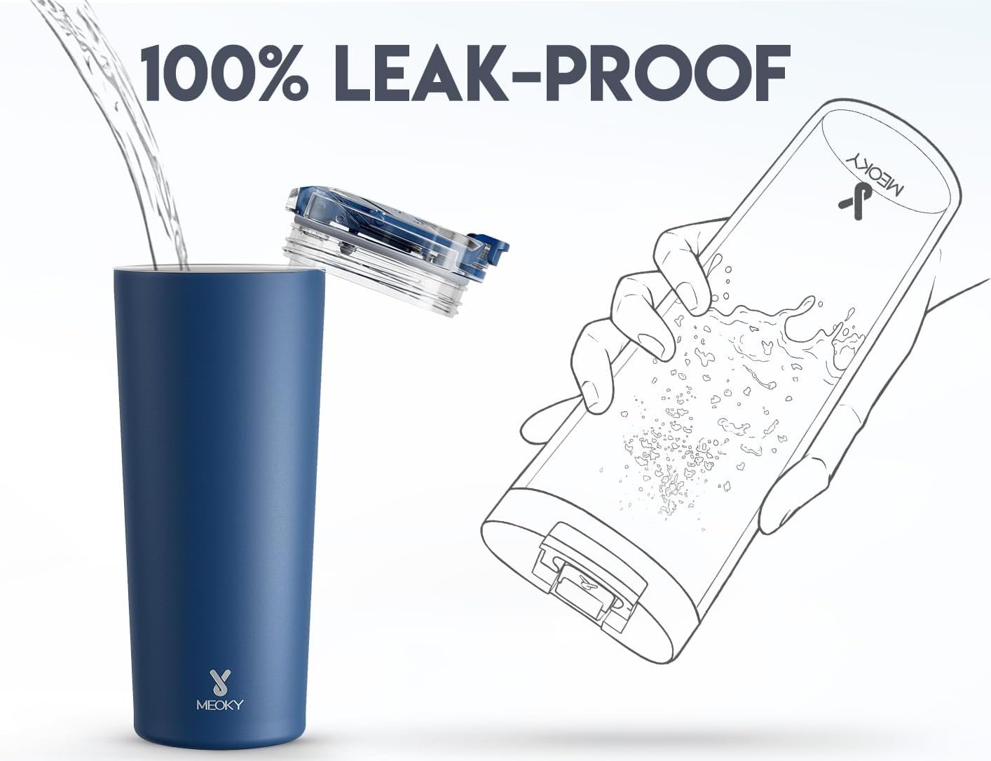 NON-SLIP BASE. With non-slip base, Meoky travel coffee tumbler stands up and fights like a man.
