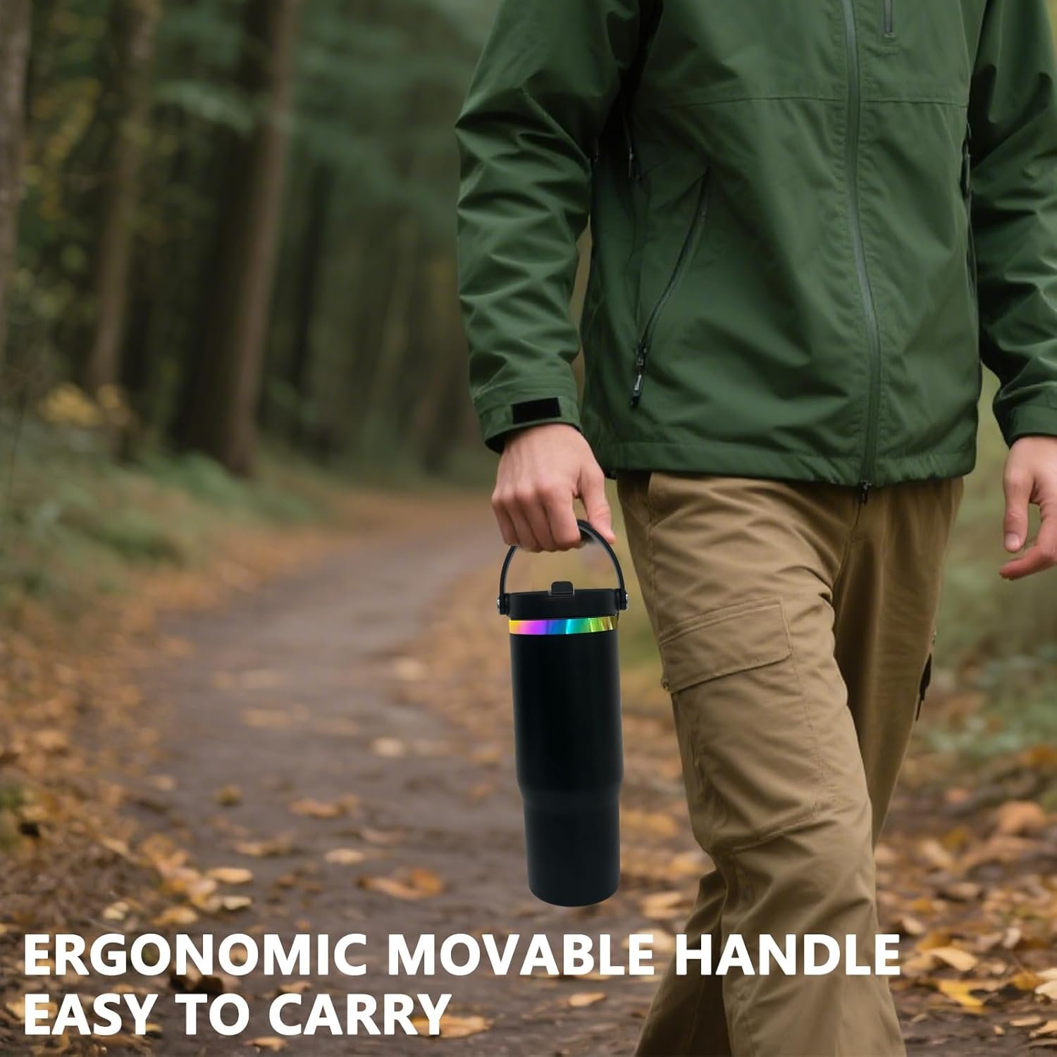 Dynamic Handle Design: Different from most tumbler with handle, our ergonomic rotating top handle lets you grab this insulated tumbler comfortably and provides a secure grip and added durability, perfect for on-the-go use. Perfect for daily use, outdoor activities, traveling or driving.