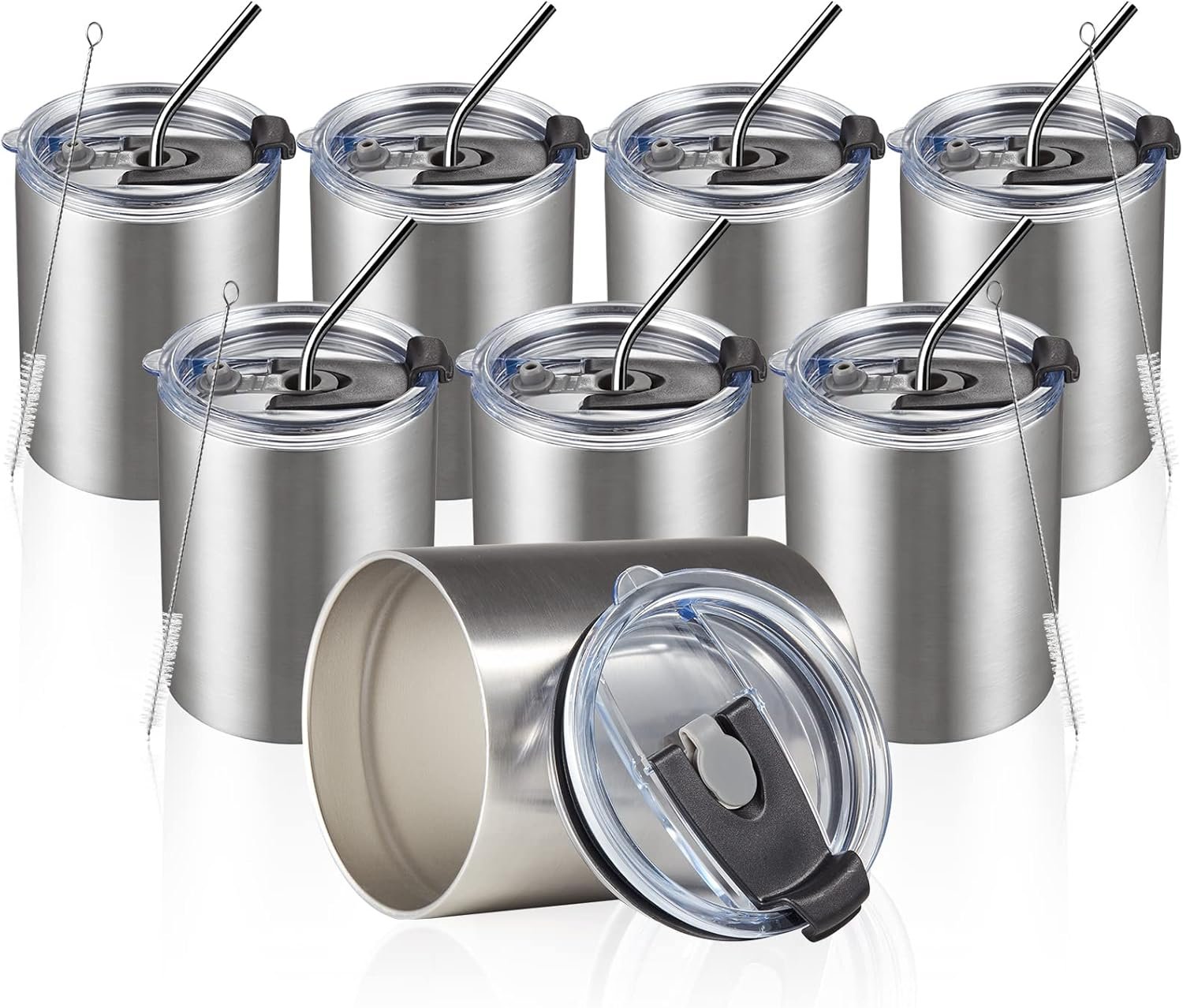 MEWAY 12oz/8Pack Coffee Mug With Lid, Insulated Stainless Steel Reusable Coffee Cup, Double Wall Durable Coffee Mug, Powder Coate,For Coffee, Beer, Home, Office(Silver,8 Pack)