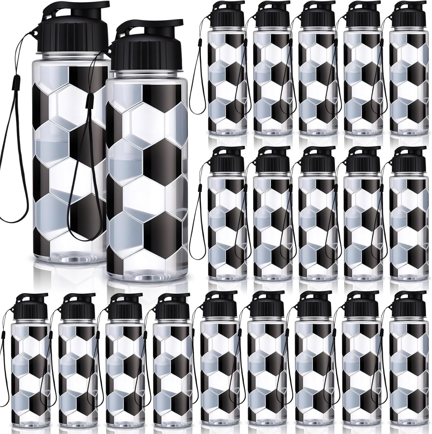 Soccer Themed Design: these water bottles complement the soccer theme, and their classic white black soccer design adds a touch of sophistication to your lifestyle