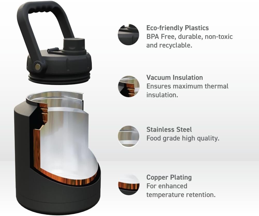 Tough Enough for the Wild, Cool Enough for You: Built from rugged stainless steel and armed with double-wall vacuum insulation and a copper lining, this jug is ready for whatever you throw at it. Plus, the easy-access lid means no spills, no mess—just pure hydration bliss