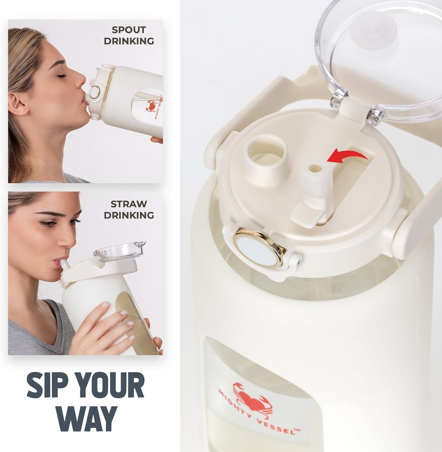 Flow your way with dual drinking options; sip mindfully through the built-in straw or drink freely from the wide-mouth spout; leak-resistant lid with locking latch gives you peace of mind on the move