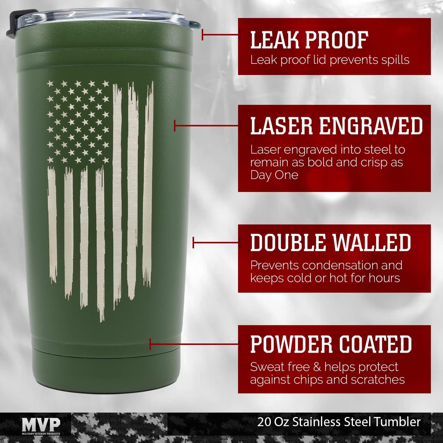DOUBLE WALL & INSULATED TUMBLER: The American Flag tumblers are made from pro-grade stainless steel and finished in durable matte black; Double-wall vacuum insulation eliminates condensation; The high-quality stainless steel is made to last a lifetime