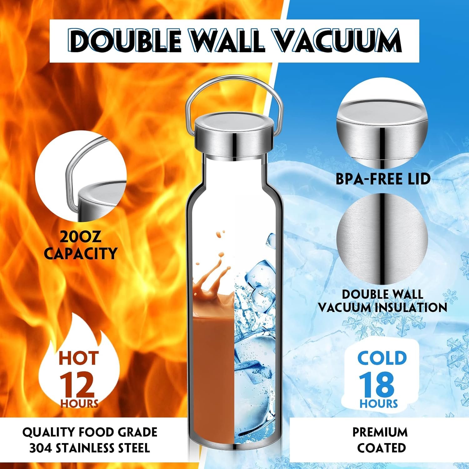 Double Wall Insulation: the water bottle multipack is made of solid and quality food grade 18/ 8 stainless steel, which is rustproof and solid; Insulated stainless steel bottle adopts double layer design, cold and hot insulated, which can keep the drinks cool for several hours