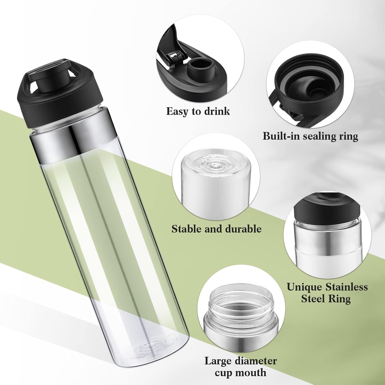 Reliable Material and Without BPA: our clear sports water bottles are made of quality AS health materials which are transparent and pure while without BPA; This AS material makes the water bottle have good anti drop performance and high temperature resistance while not easy to break