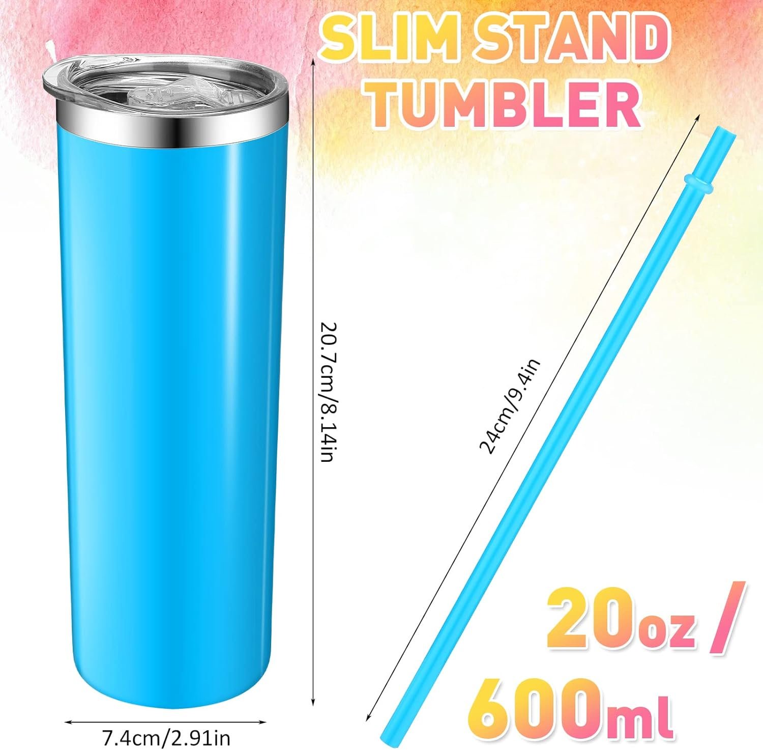 Large Capacity: the 20oz skinny tumbler is a tapered design with a wide upper and a narrow lower and a suitable size, which is suitable for most of the holders for cups, like car cup holders; And they can be applied to hold various beverages, such as water, coffee, juice, wine, beer, ice and more