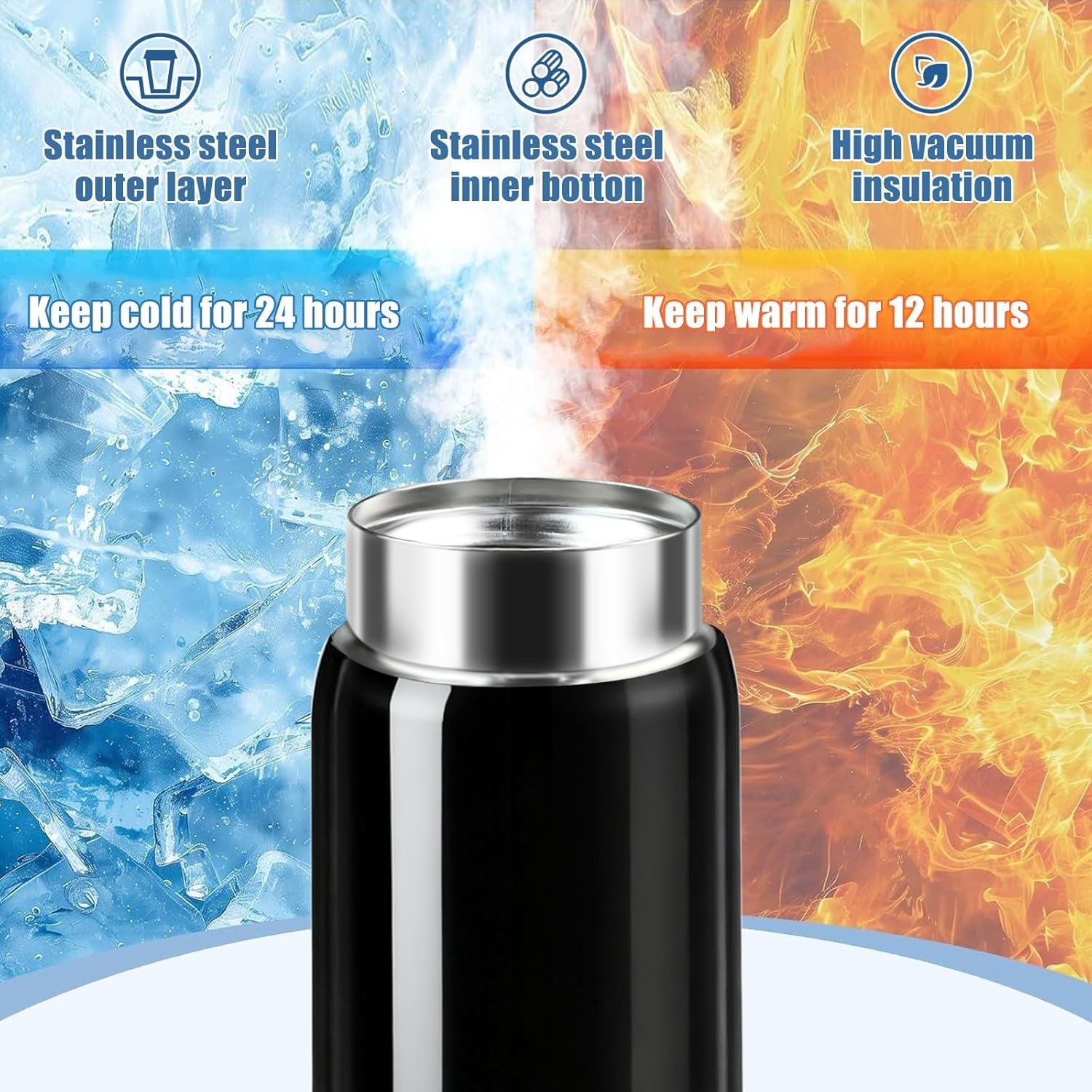 Equipped with advanced double-wall vacuum insulation, this water bottle insulated excels at retaining temperatures. It keeps hot drinks warm for up to 8 hours and cold beverages chilled for up to 6 hours