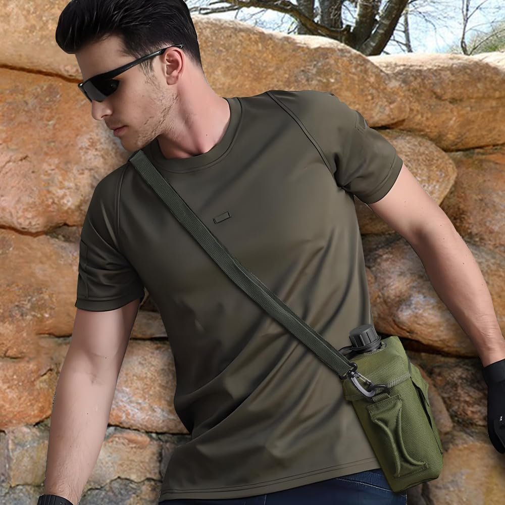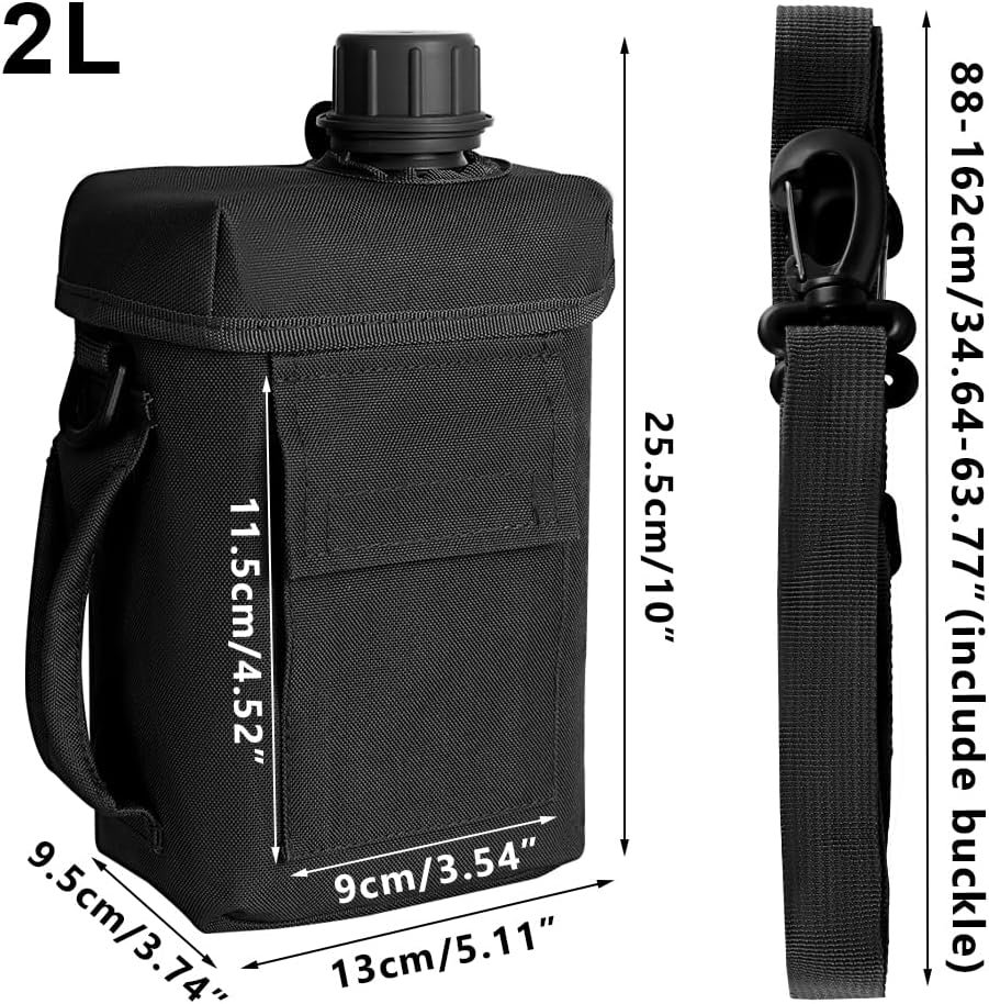 MiOYOOW 2L Water Bottle, Large Capacity Portable Tactical Canteen with Strap Buckle, Waterproof Drink Cup for Hiking, Camping, Sports