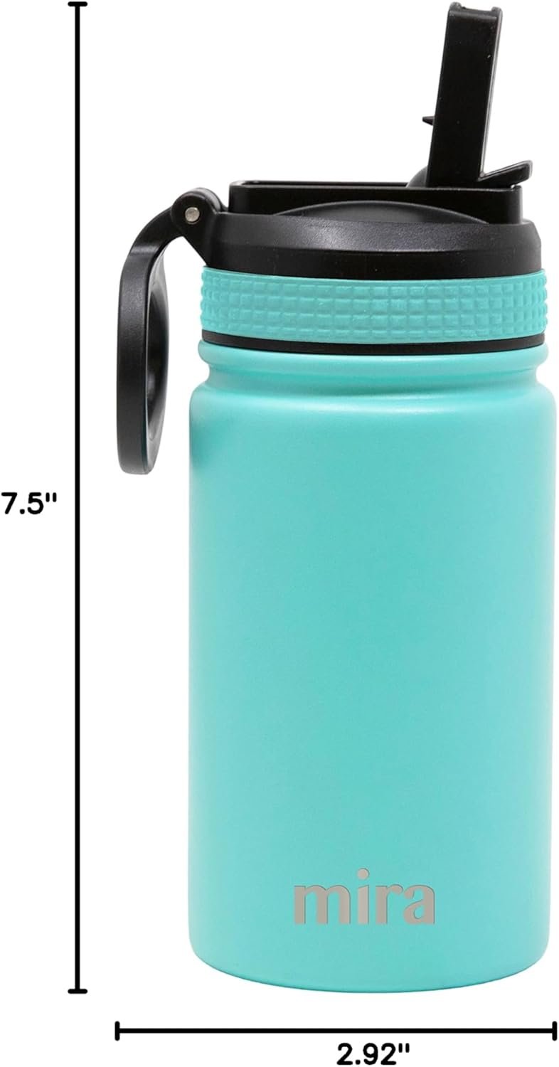 MIRA 12 oz Small Insulated Water Bottle for Cold Drinks | Leak-Proof Stainless Steel with Straw Lid for Travel, Hiking, Gym – Teal