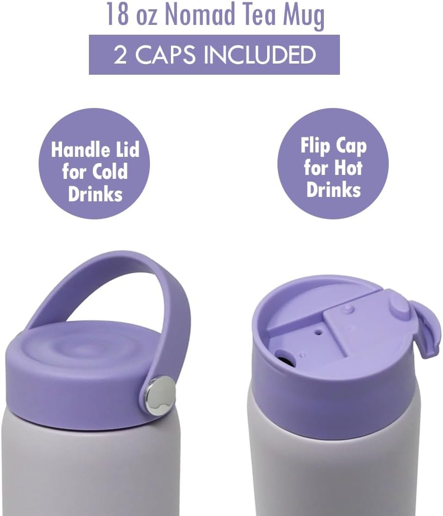MIRA 18 oz Tea Infuser Thermo – Stainless Steel Travel Bottle with Removable Strainer for Loose Leaf Tea – Insulated Hot & Cold Brew Steeper – Heather