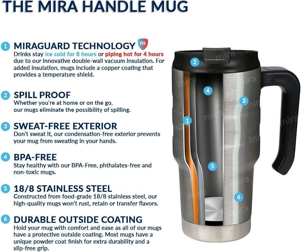 Innovative Vacuum Insulation: Keep your drinks hot for 4 hours or cold for 8 hours with our highly rated insulated coffee mug. Using our innovative MiraGuard Technology, your coffee thermo maintains its temperature for hours and provides a sweat-free exterior.