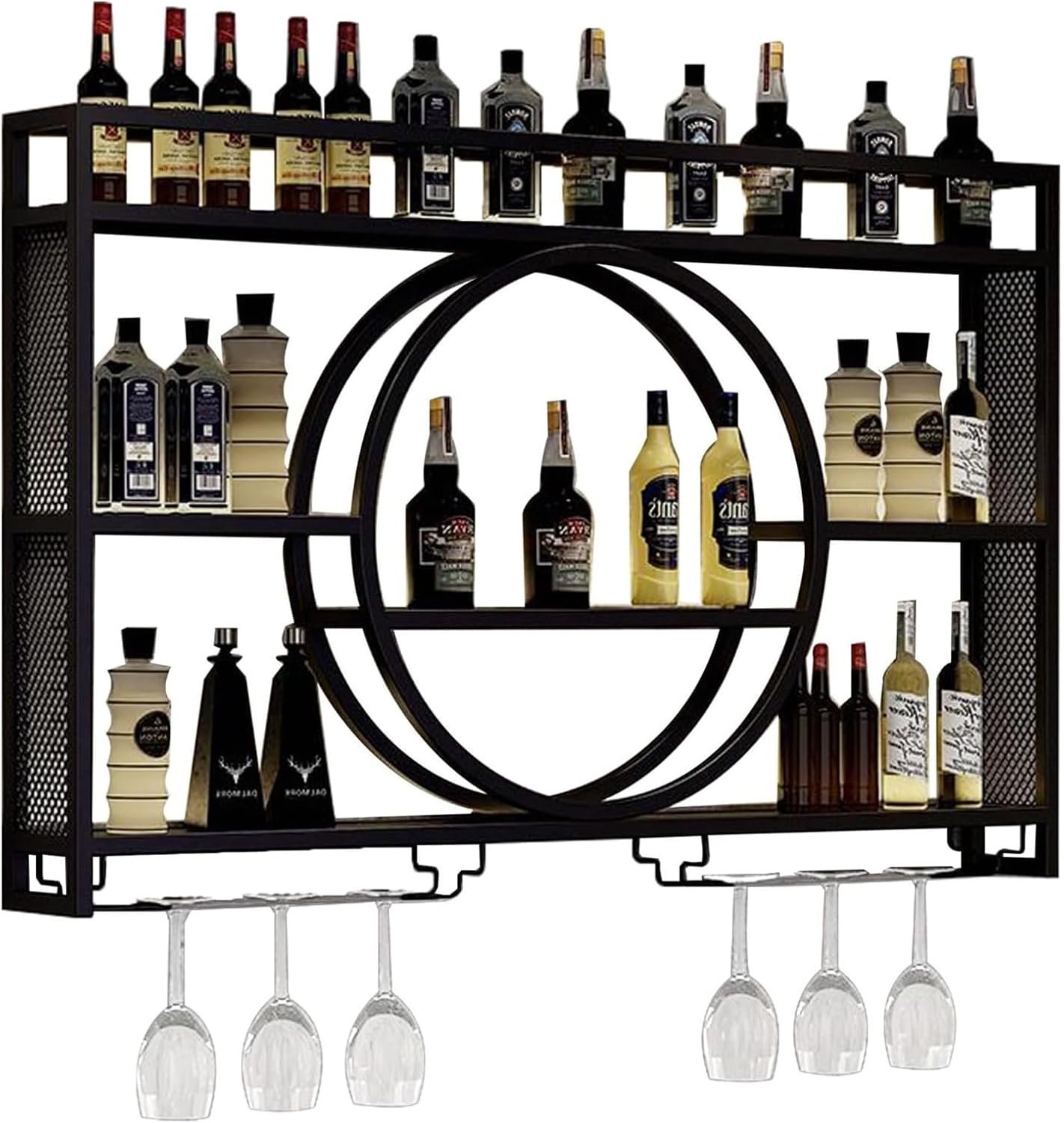 The wall wine rack features a spacious storage capacity, able to accommodate wine bottles, wine glasses, water glasses, small ornaments, books, kitchen spice jars, and other items.