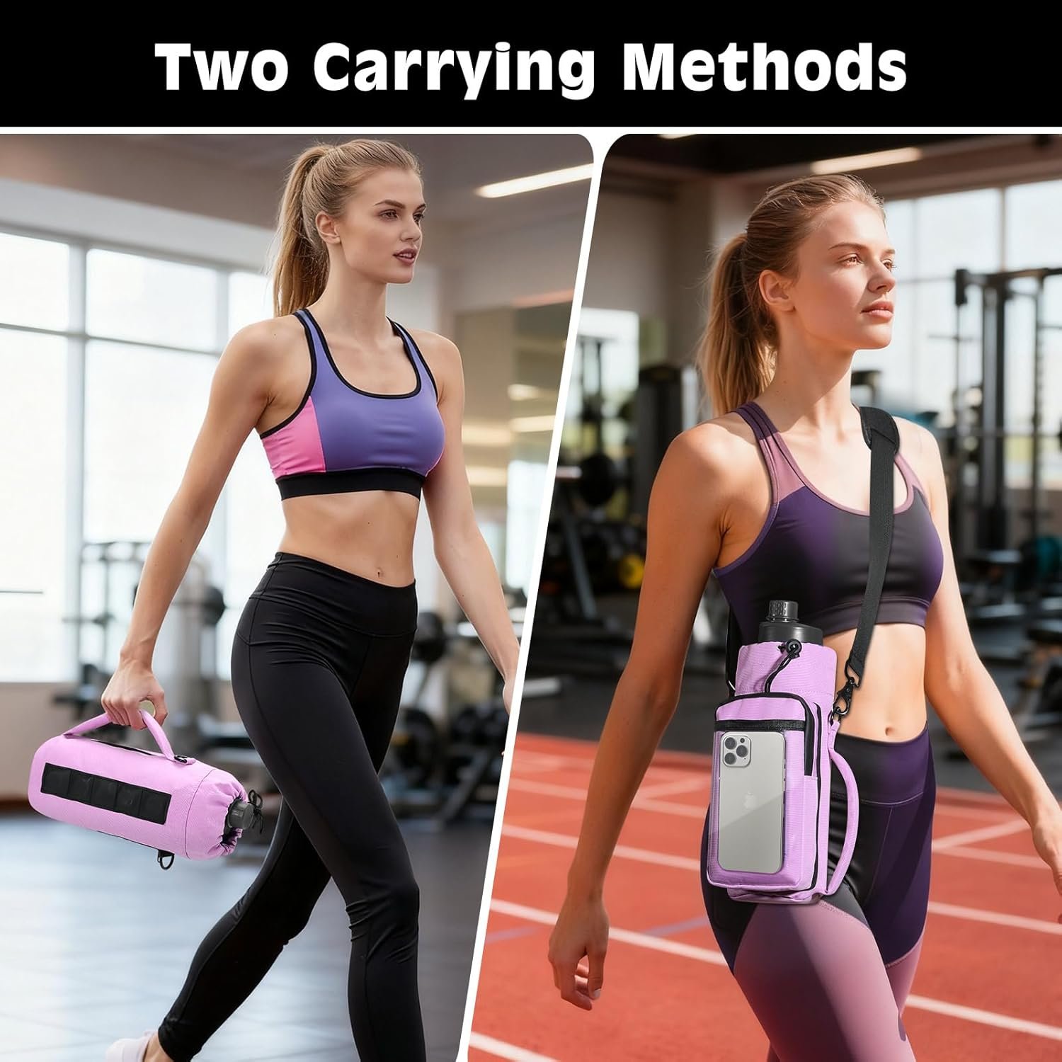 MoKo Magnetic Gym Bag, Magnetic Water Bottle Holder with Clear Phone Pouch, Built-in 4 Magnets Fitness Bag for Men and Women Compatible with Most Water Bottles, Gym Accessories Gifts, Purple