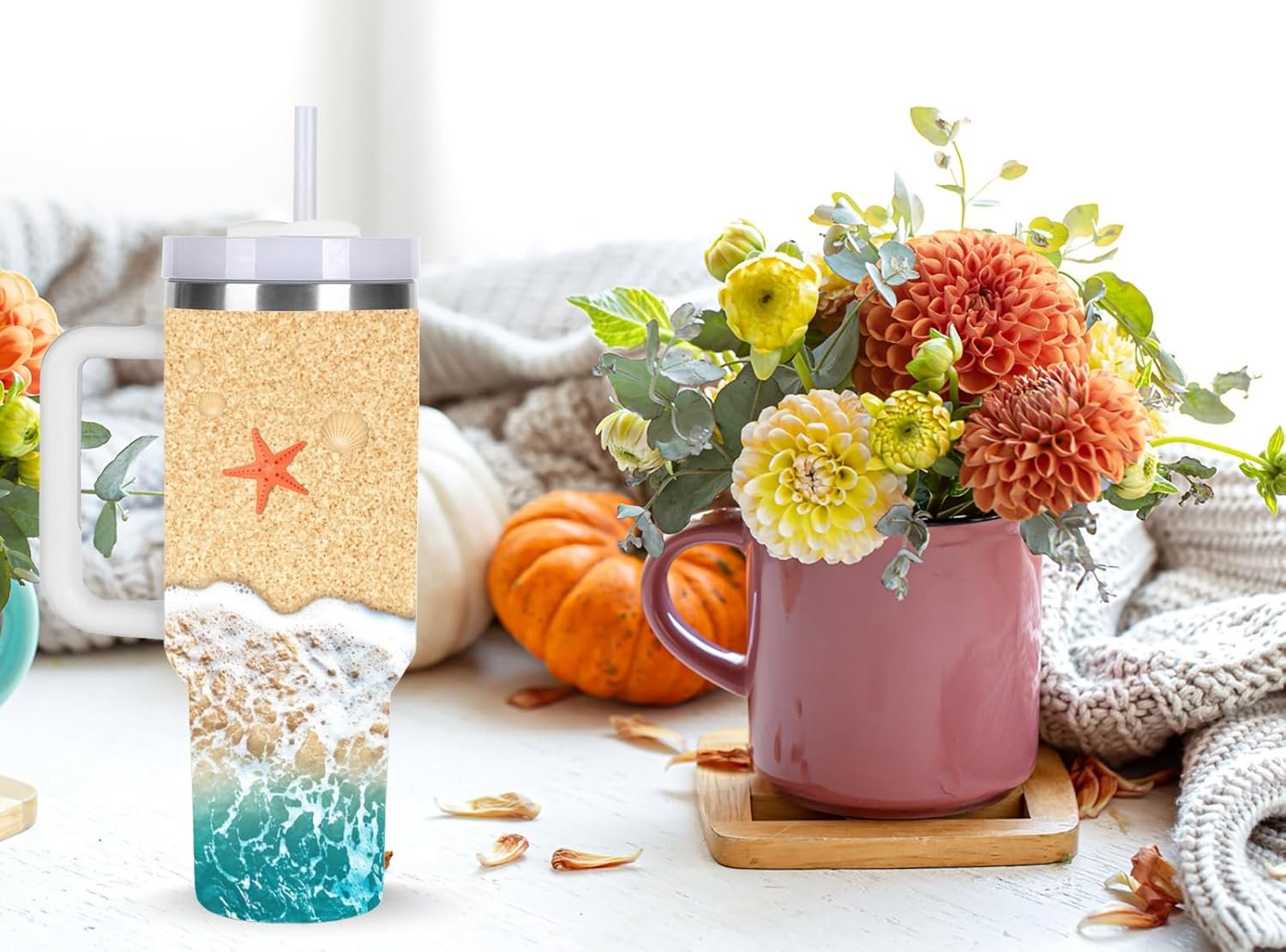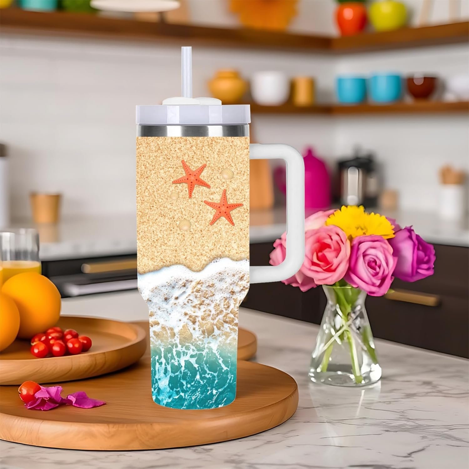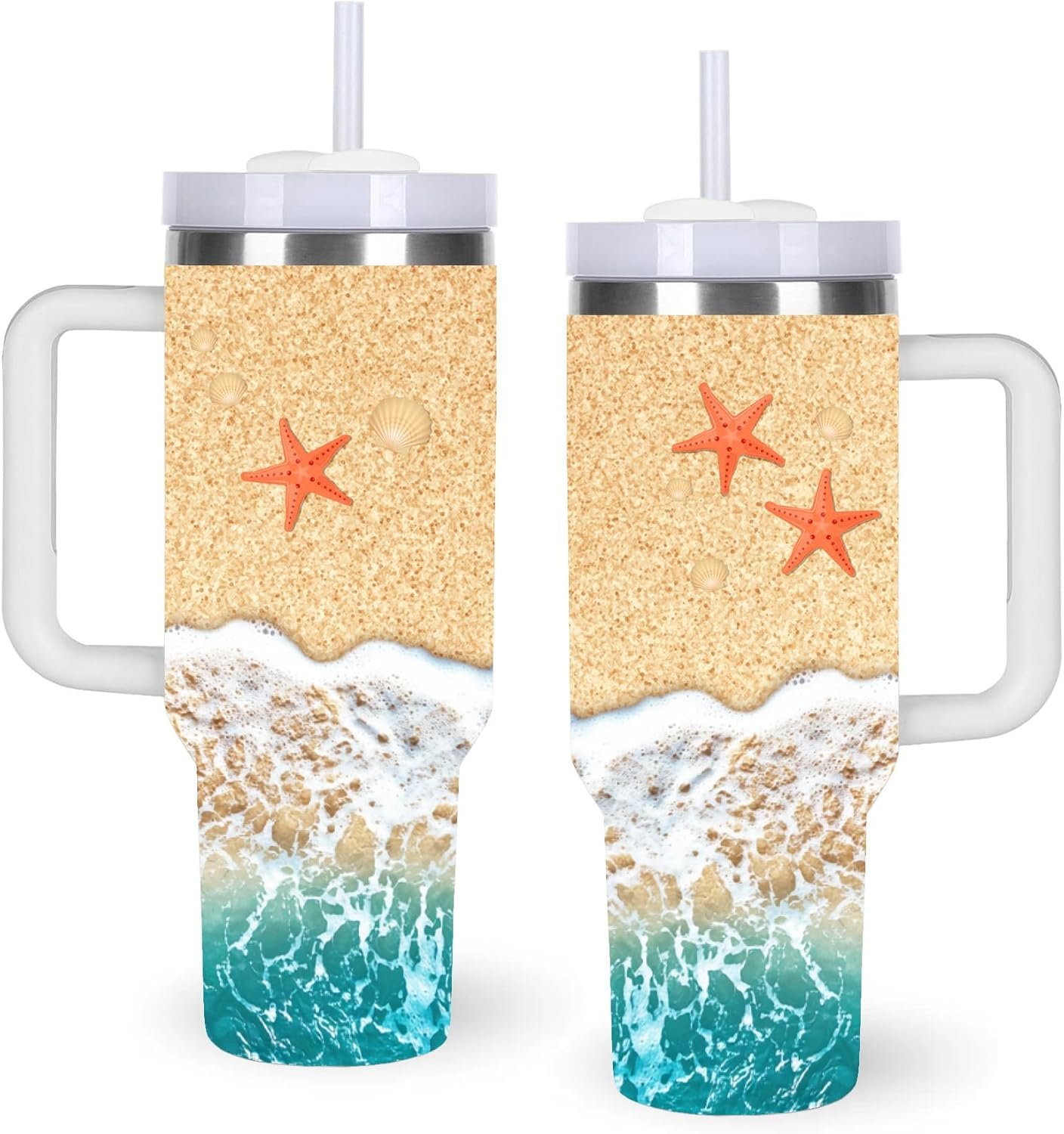 momocici 40oz Beach Tumbler with Handle Gifts for Women.Beach Lover Cups Tumbler Gifts for Women.40 oz Birthday Christmas Beach Cup Tumblers for beaches lover.