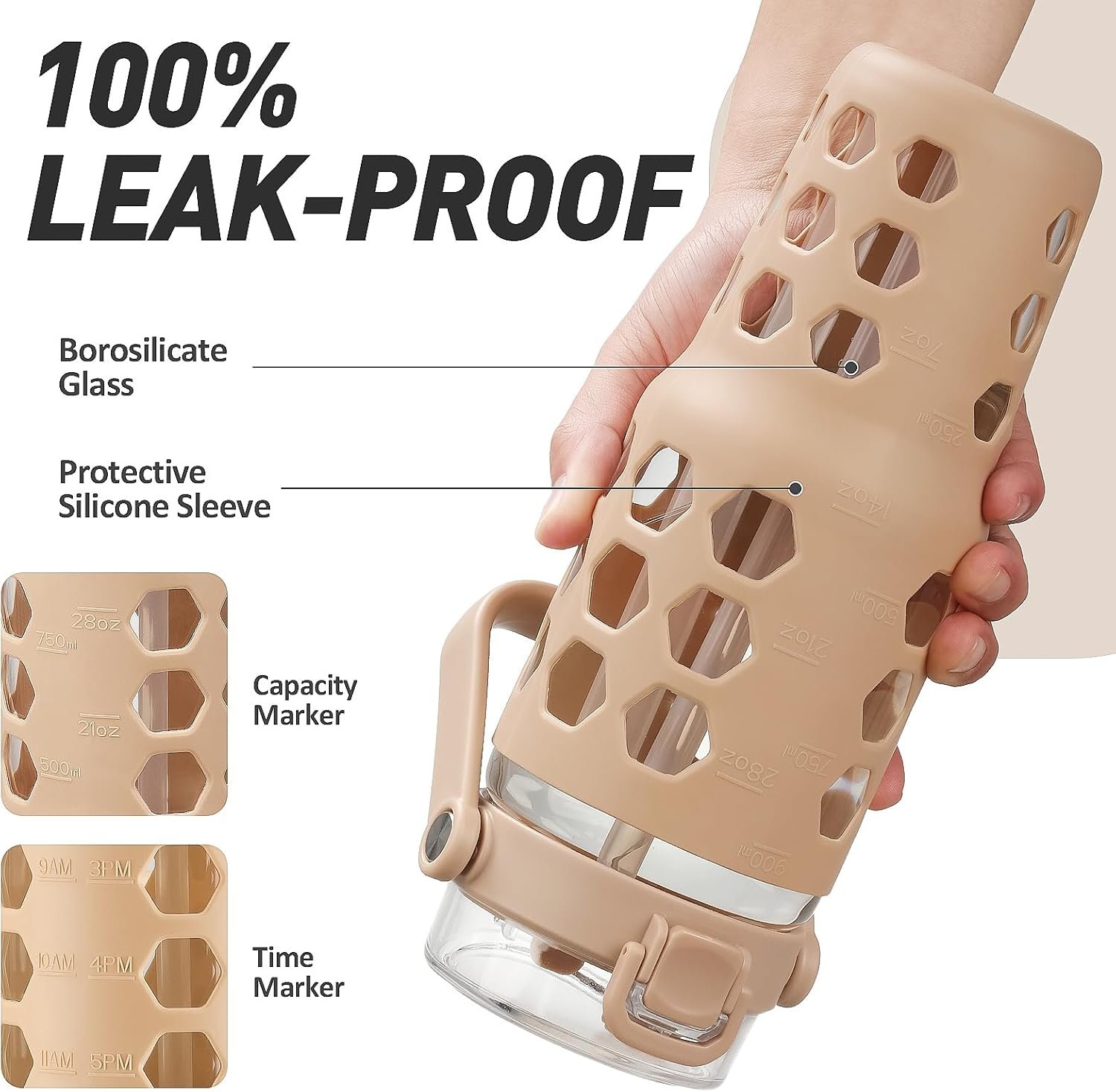 SILICONE SLEEVES FOR BETTER GRIP:Use this water tumblers at home, office, take it to the gym or anywhere really! Our glass water bottles comes with a stylish silicone sleeve to offer you additional protection and to provide an extra grip to the bottle. The sleeve is removable, so you can use the water jug with or without it.