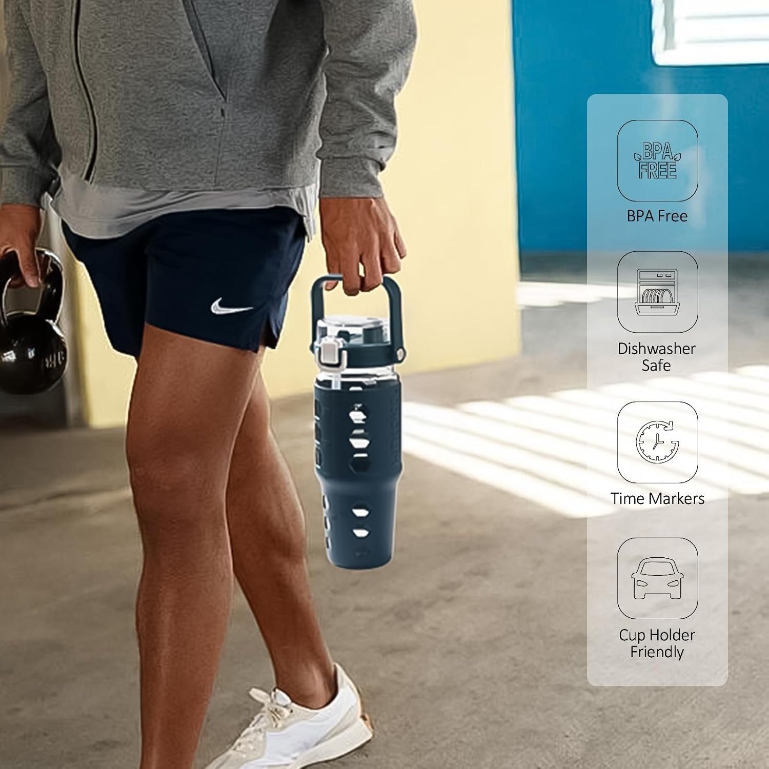 WIDE MOUTH FOR EASIER CLEAN:Reusable daily water bottle with a wide mouth slot, you can easily put coffee powder, ice cubes, etc. which is also easier to clean later on and dishwasher safe.