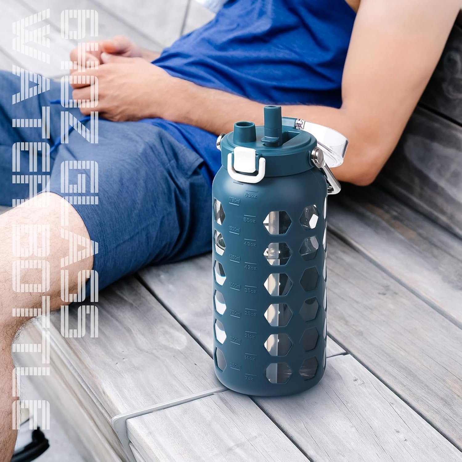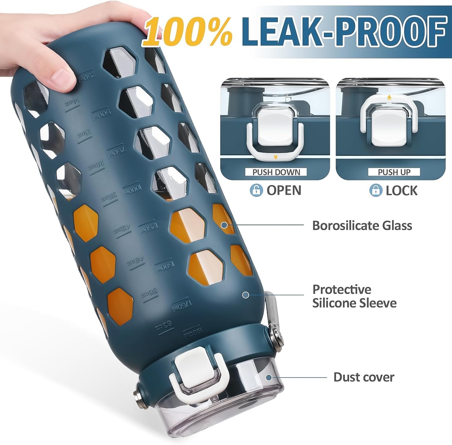 GLASS BOTTLE WITH SILICONE COVER – The water bottle is designed with high-quality silicone cover, which is anti slip, heat insulation, and ice insulation, effectively protecting the inner liner, preventing scalding, wear-resistant, and sturdy.